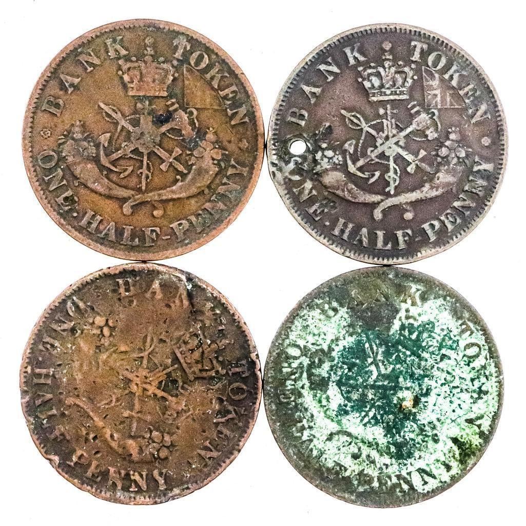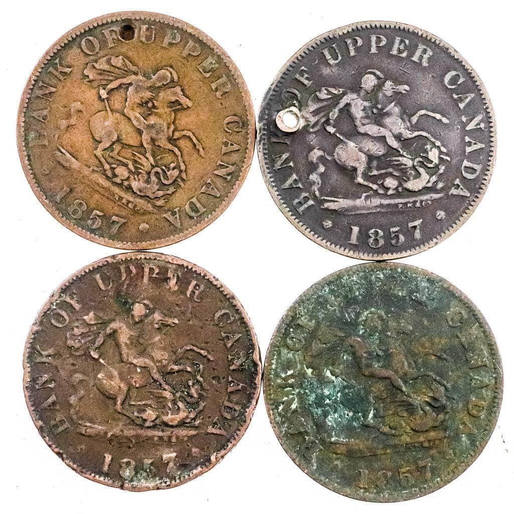 Lot of (4) Bank of Upper Canada 1857 Half Penny Tokens Good