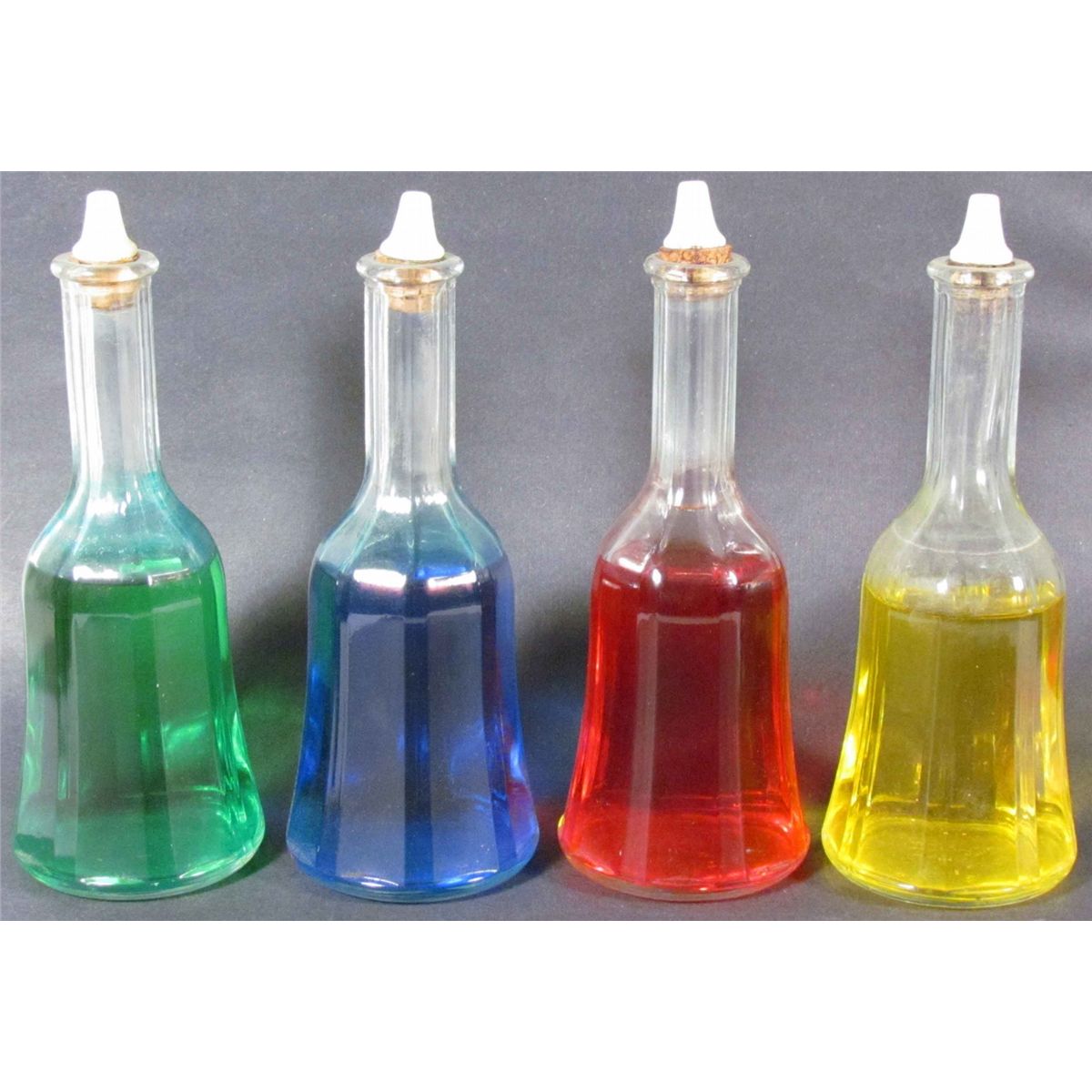 Lot of 4 Bell Shaped Barber Bottles with porcelain stoppers.