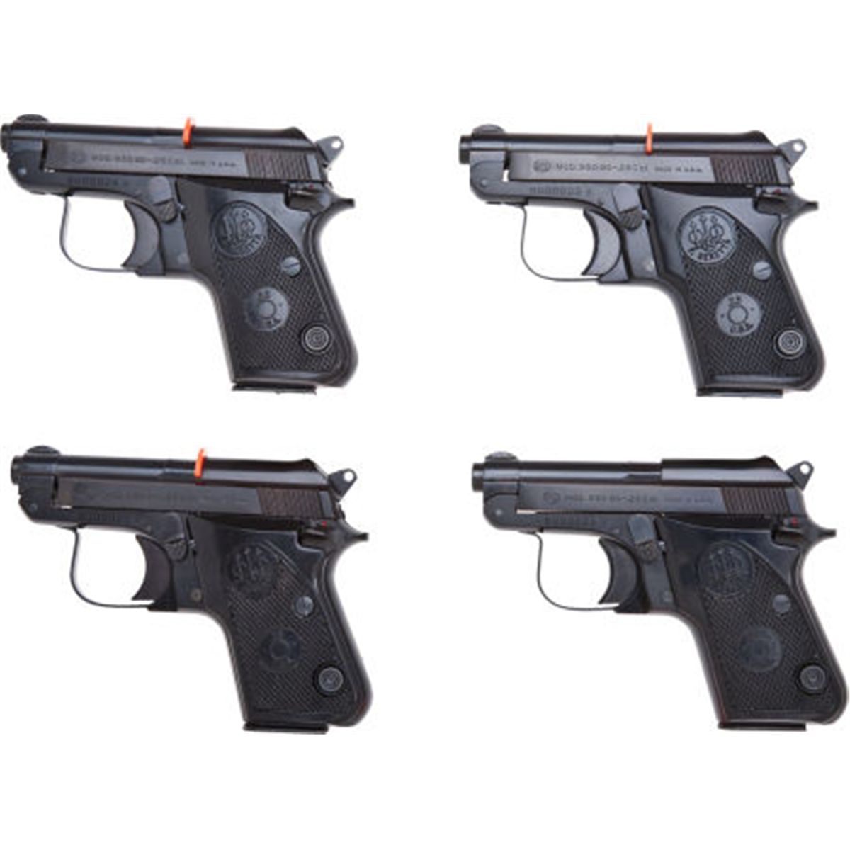 Lot of 4 Beretta M950-BS Consecutively Numbered Semi-Automatic Pistols. Consecutive Serial No. BU00021V through BU00024V, .25 short, hinged 2-3/8; barrel, blue finish, black plastic grips, single action, each comes with one magazine, manual, cleaning brush all in their factory# Beretta cardboard box. Made in U.S.A., 4 pistols, MSR $140 each.Condition: As-New in factory boxes. Bores are bright, actions crisp. NRA FIREARMS FOR FREEDOM PROGRAM