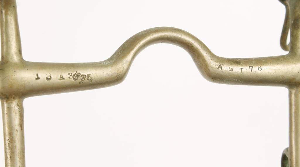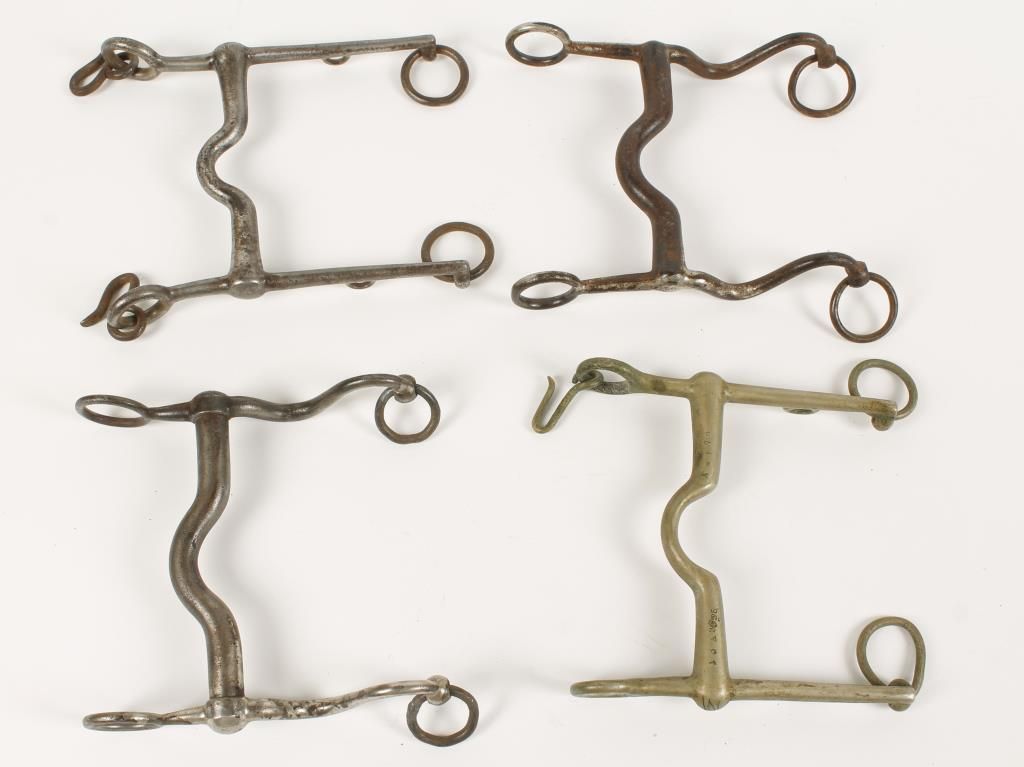 Circa 1890's- 1910's. (1) Marked "2" and "U.S", (1) marked "3" and "U.S", and (1) marked "3", "U.S", and "W.L.". All in aged condition with surface rust. (1) Officers bit, circa 1928. Stamped with letters and numbers, some of which have been stamped on top of each other. In aged condition.