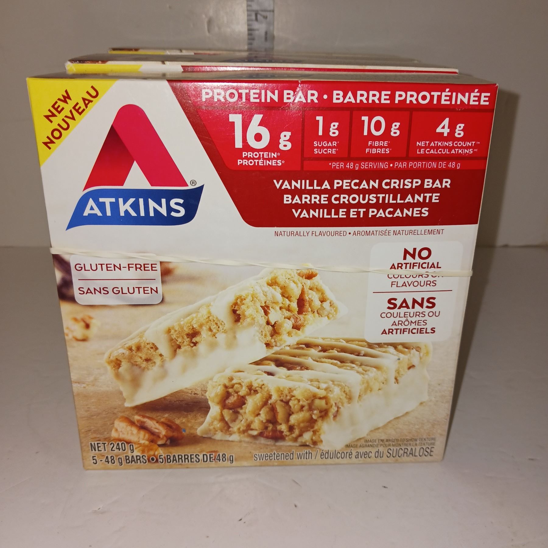 Lot of 4 Boxes Atkins Vanilla Pecan Crisp Protein Bars (5 bars in each box) - BB JUN 2024