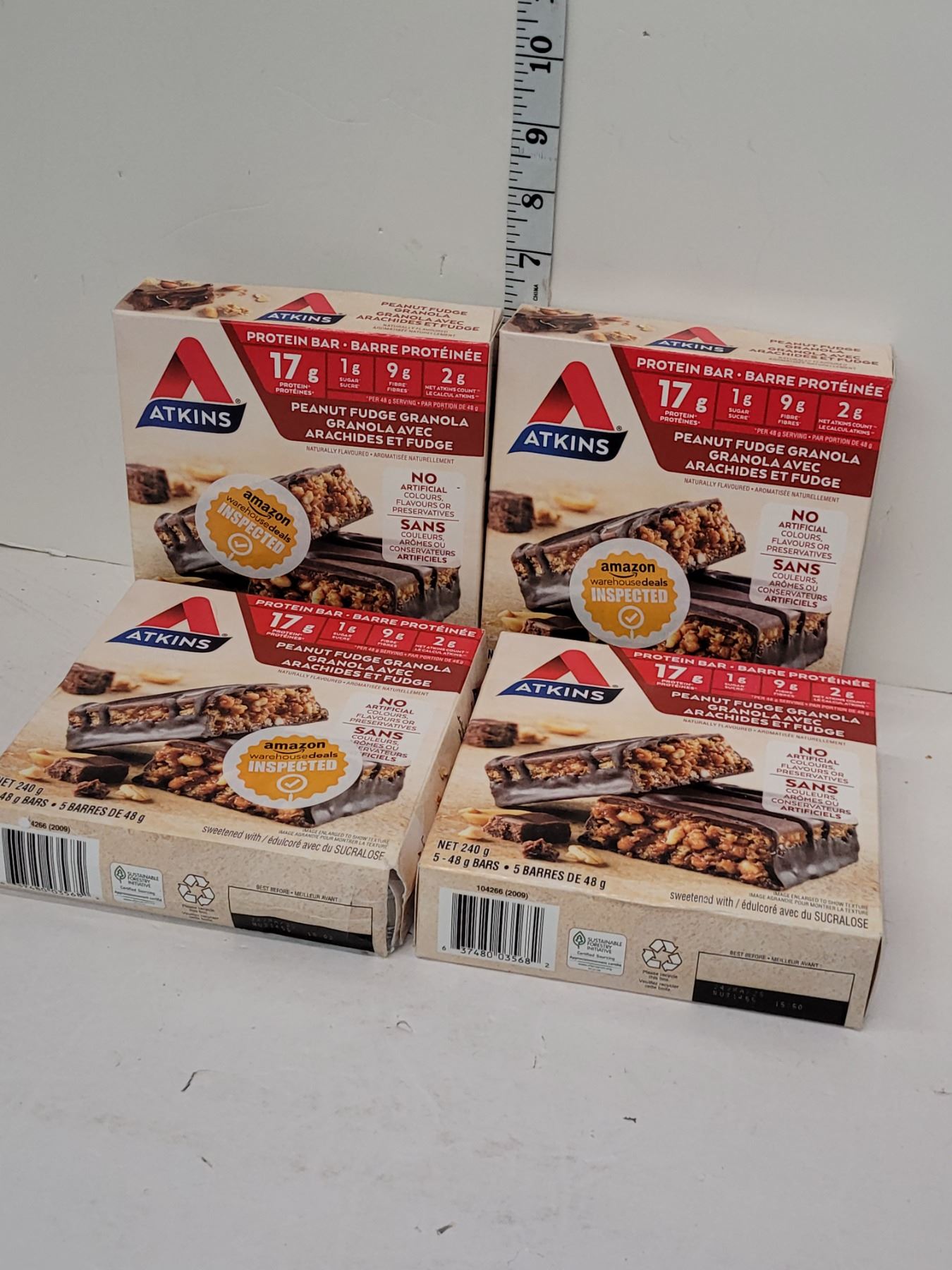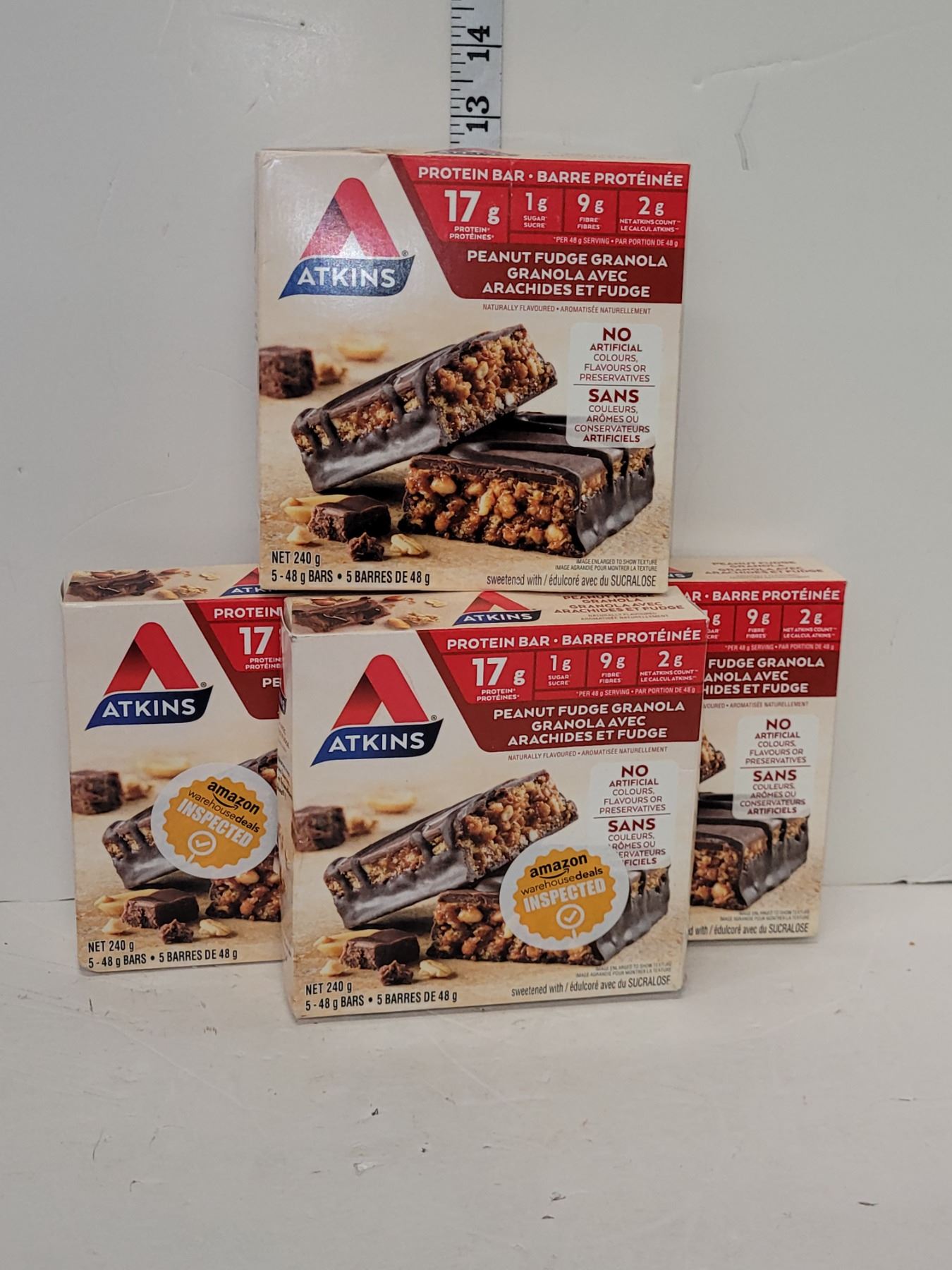 Lot of 4 Boxes of Atkins Protein Bars (5 in each box) Peanut Fudge Granola - BB 24/MA/25