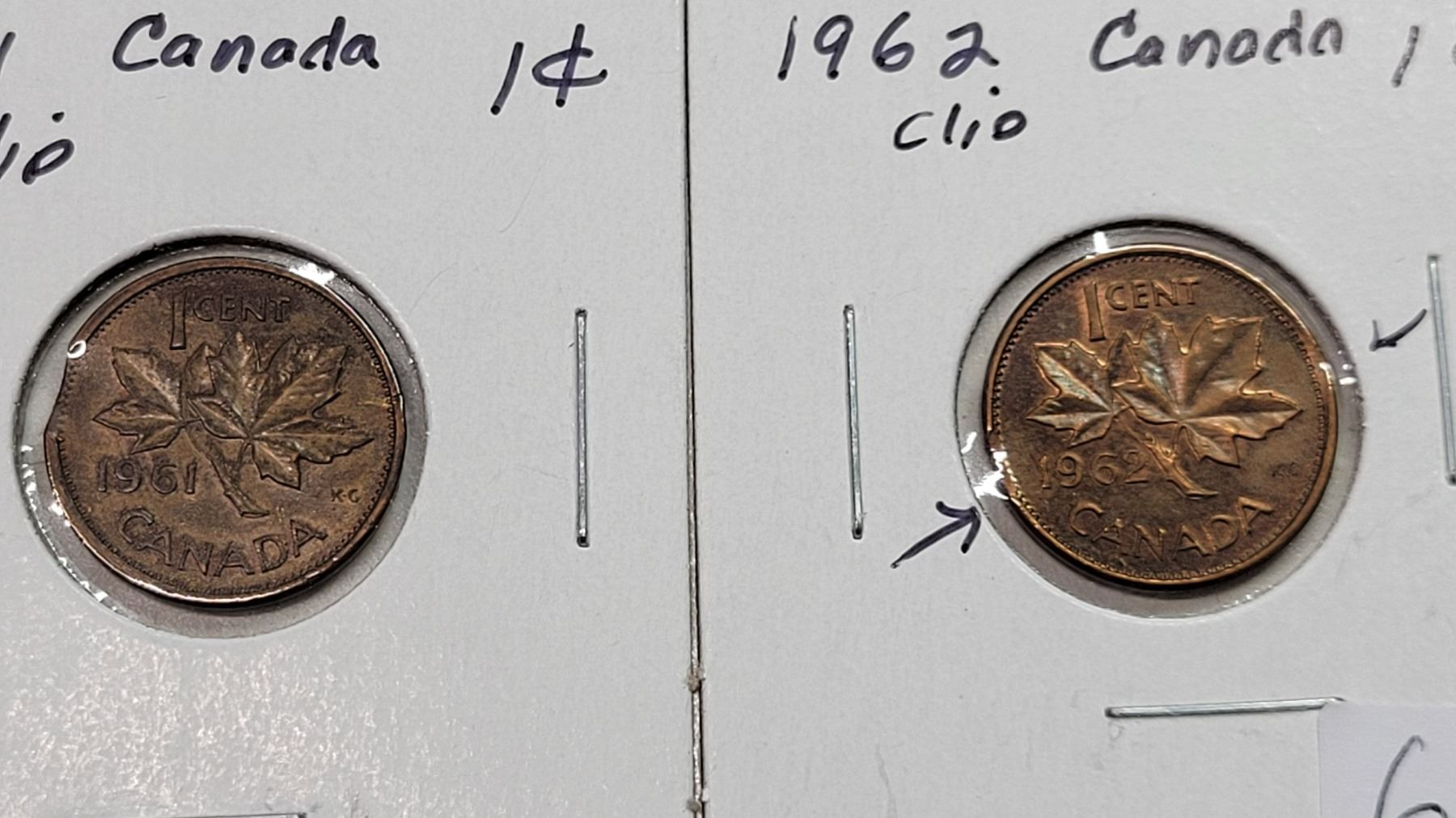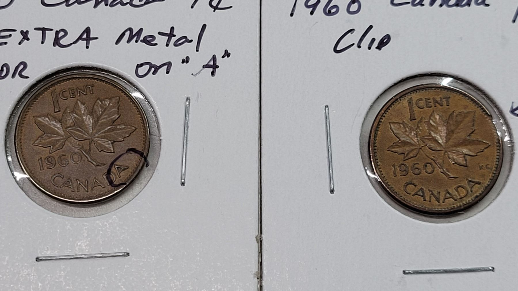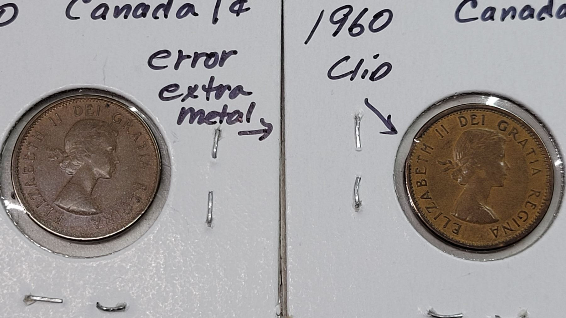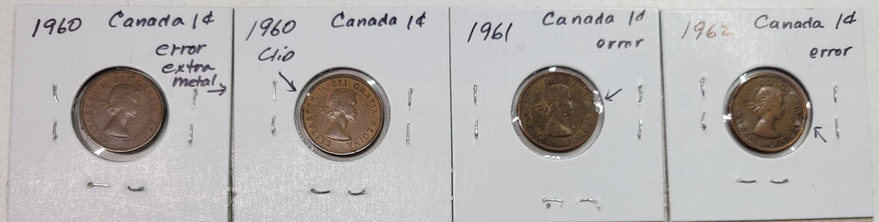 Lot of 4 Canada 1¢ Error Coins: 1960 (x2), 1961, 1962