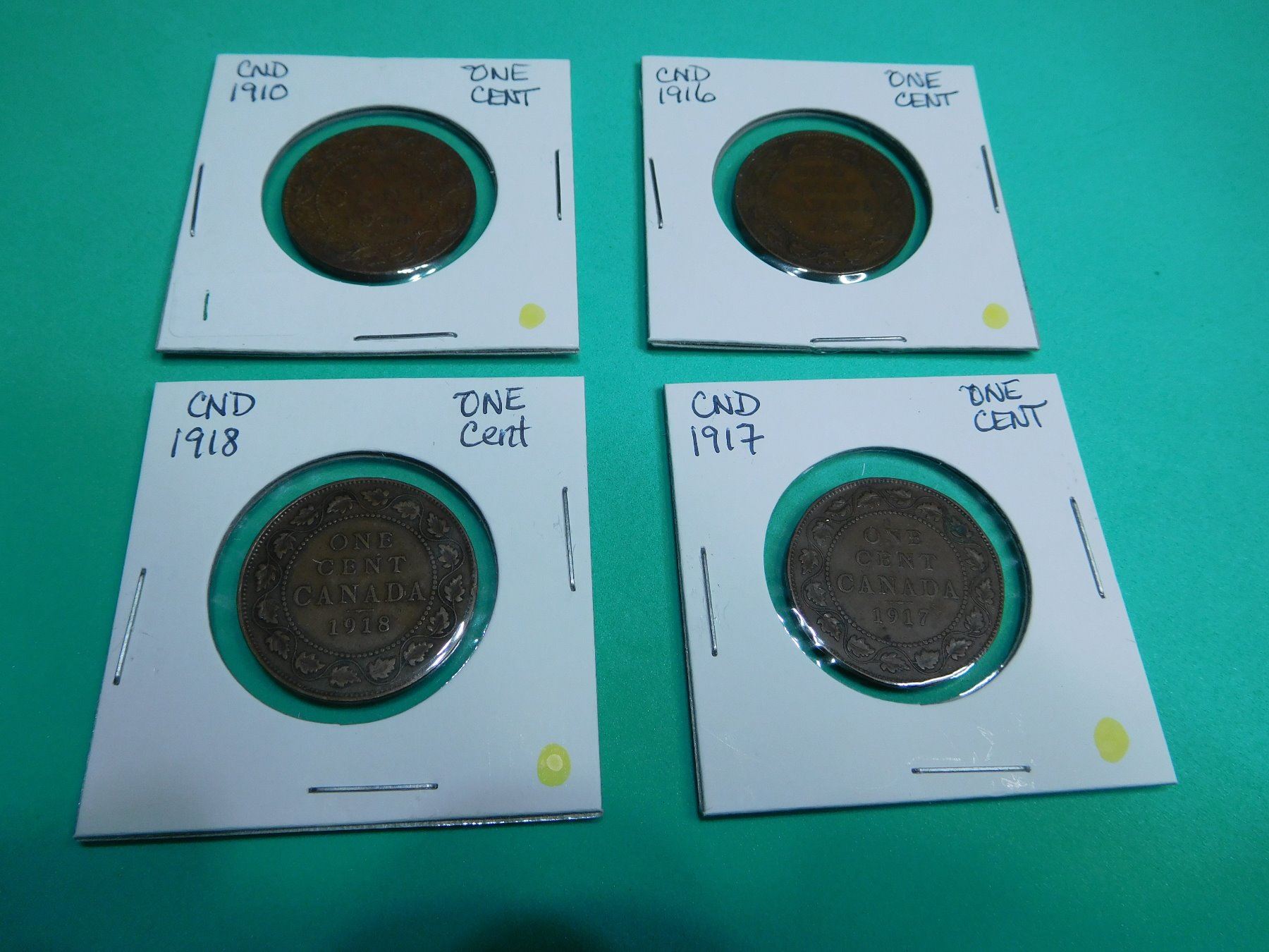 Lot of 4 Canada Large Pennies 1910, 1916, 1917, 1918