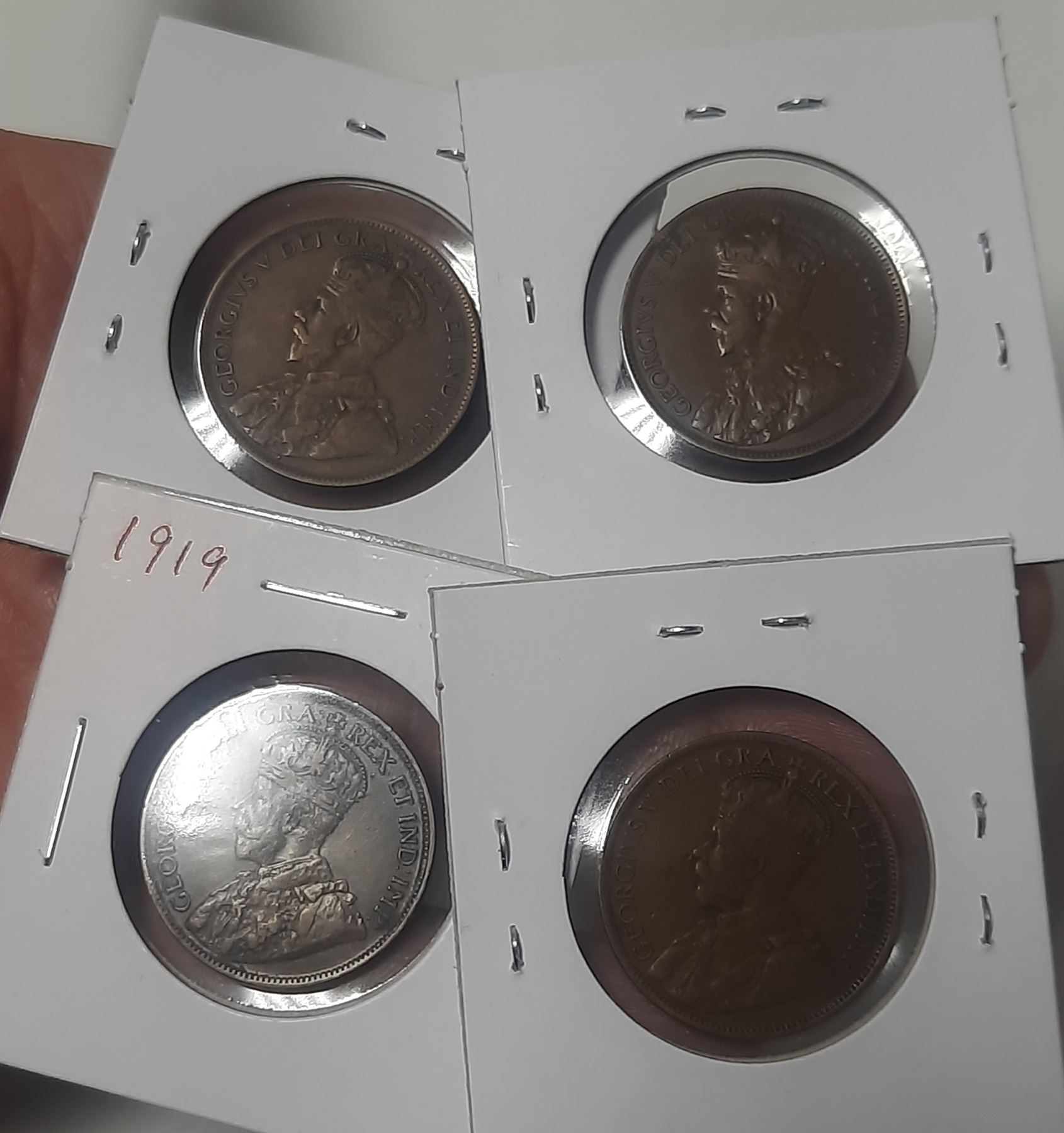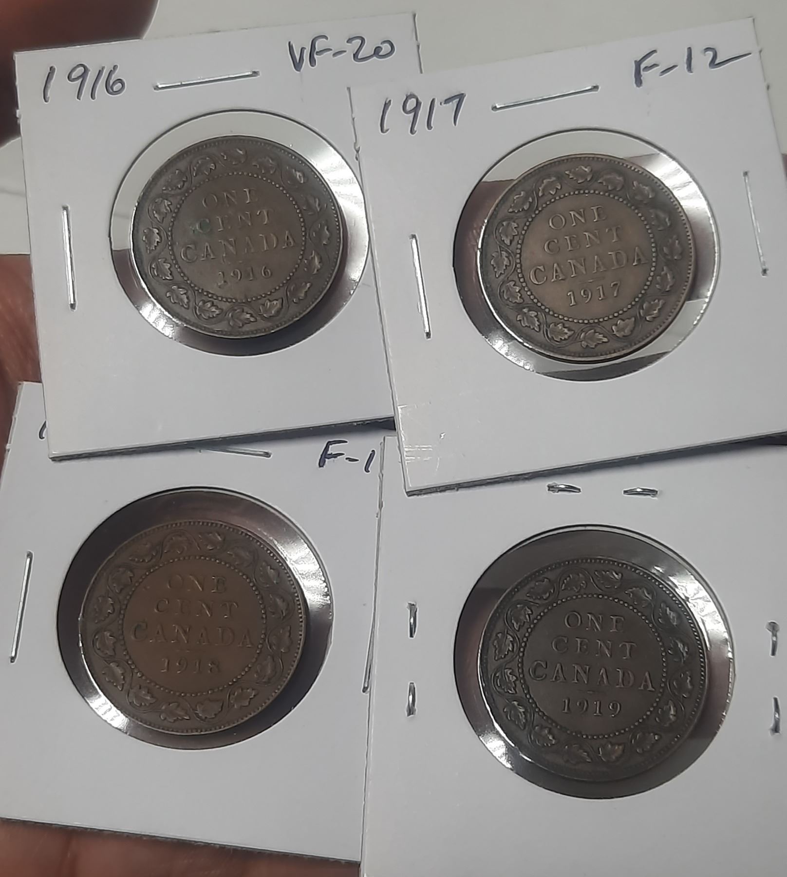 Lot of 4 Canadian Large Cents: 1916, 1917, 1918 & 1919. F-12 – VF-30.