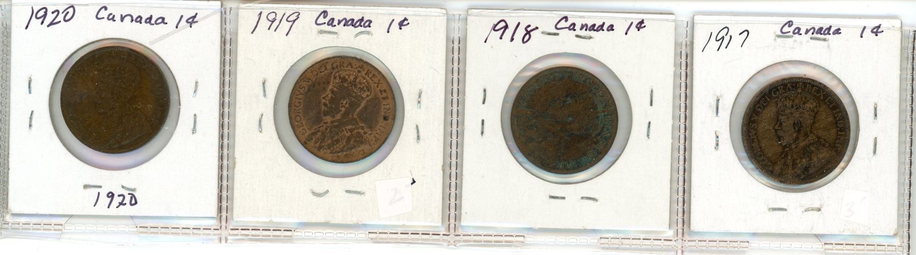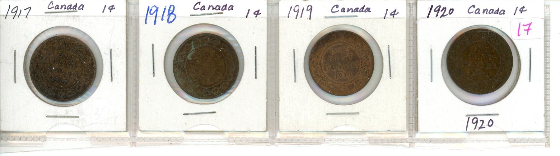 Lot of 4 - Canadian large cent coins - 1917-1920
