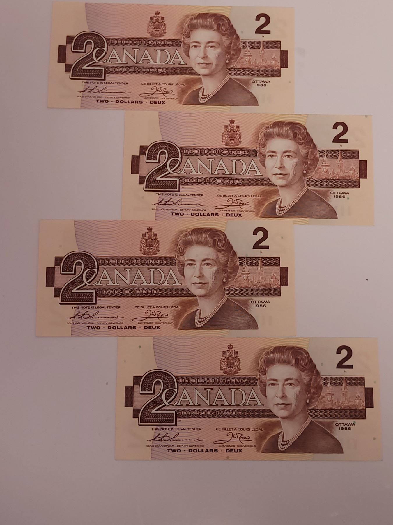 Lot of 4 Consecutitve | 1986 $2 Canada Bank Notes