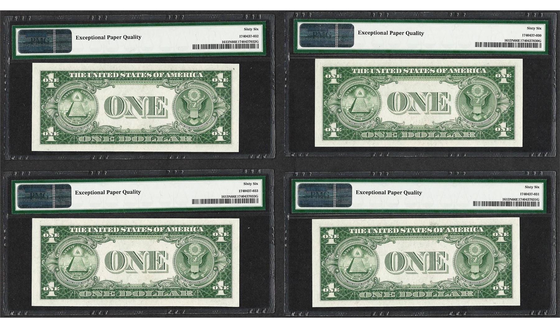 One Lot of (4) Consecutive 1935D $1 Silver Certificate Notes PMG Gem Uncirculated 66EPQ. PMG Certified.