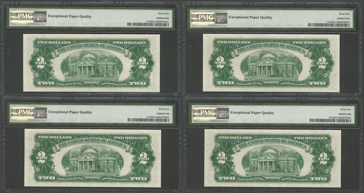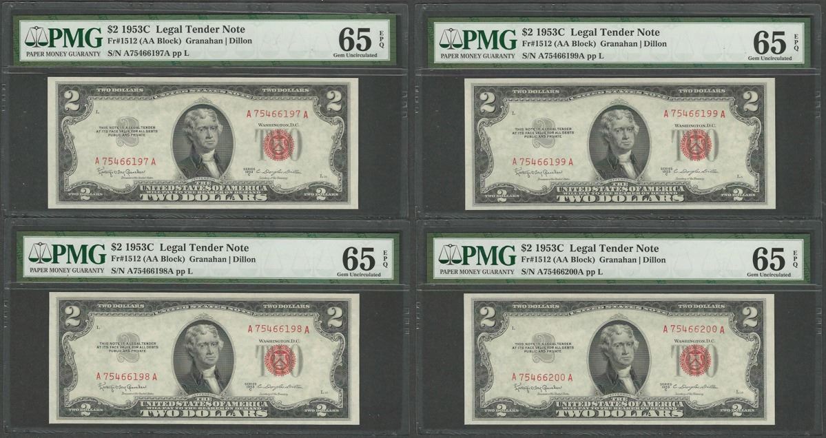 One Lot of (4) Consecutive 1953C $2 Legal Tender Notes Fr.1512 PMG Gem Uncirculated 65EPQ.