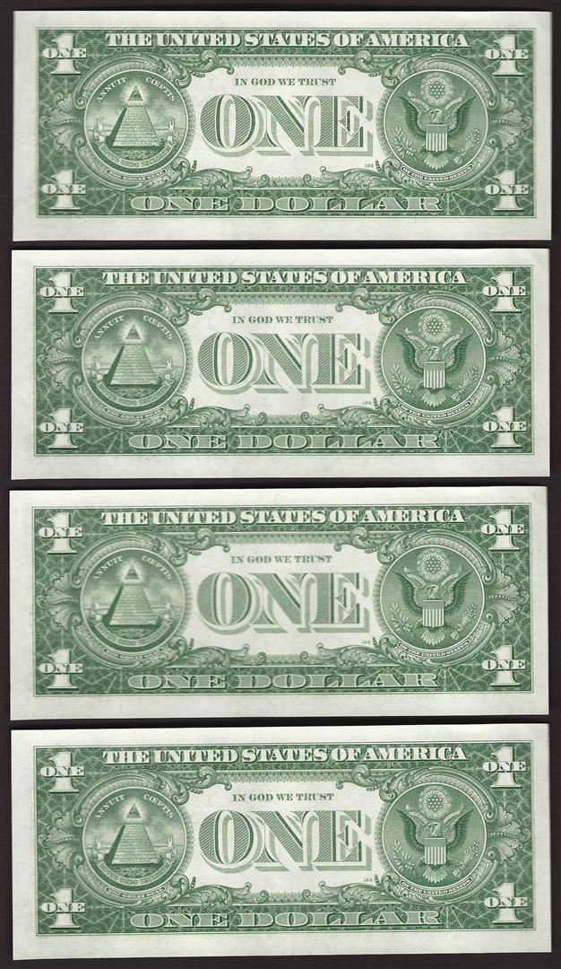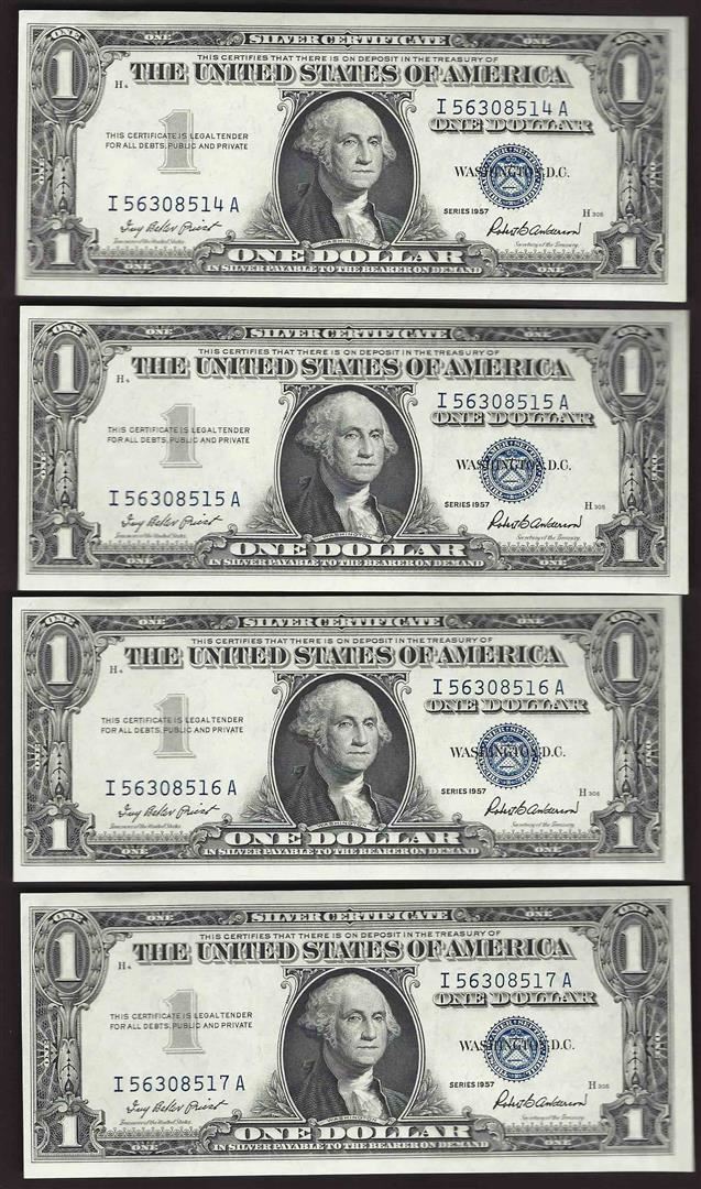 One Lot of (4) Consecutive 1957 $1 Silver Certificate Notes Uncirculated.