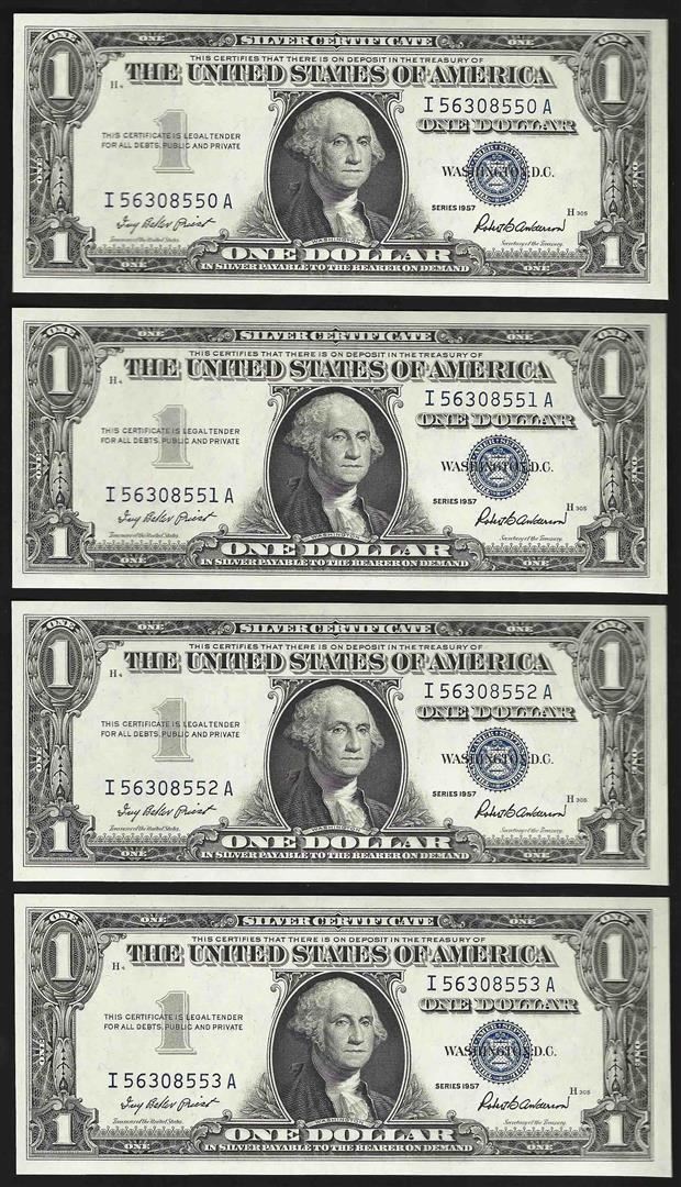 Lot of (4) Consecutive 1957 $1 Silver Certificate Notes Uncirculated