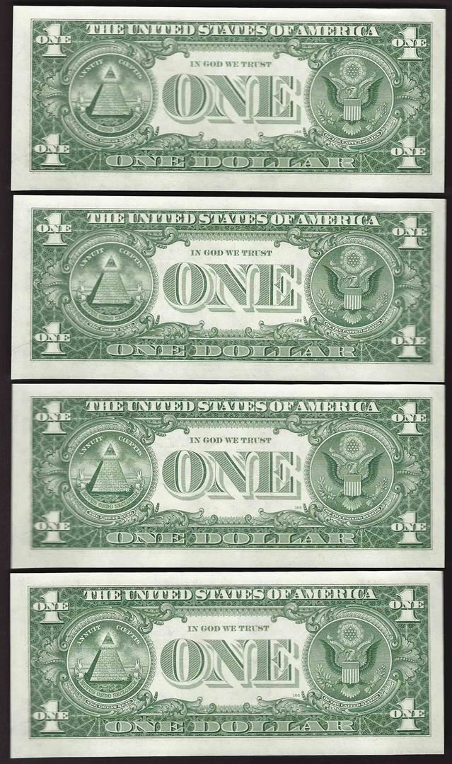 One Lot of (4) Consecutive 1957 $1 Silver Certificate Notes Uncirculated.