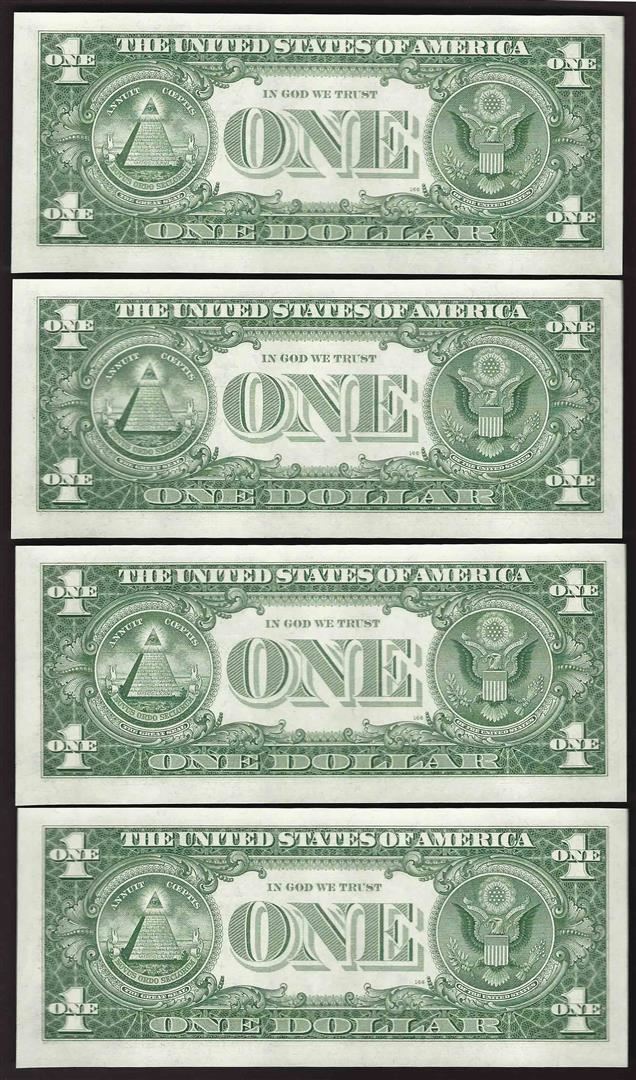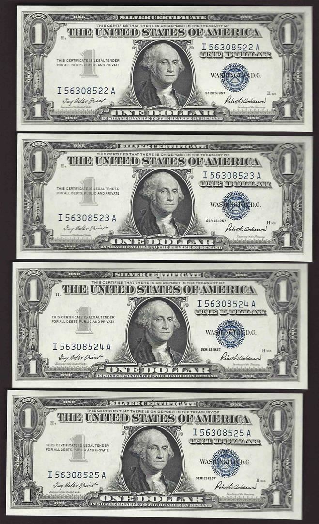 One Lot of (4) Consecutive 1957 $1 Silver Certificate Notes Uncirculated.