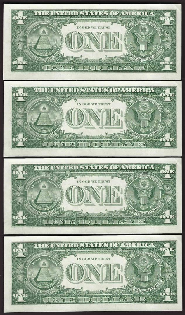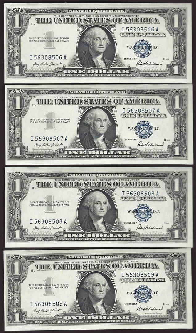 One Lot of (4) Consecutive 1957 $1 Silver Certificate Notes Uncirculated.