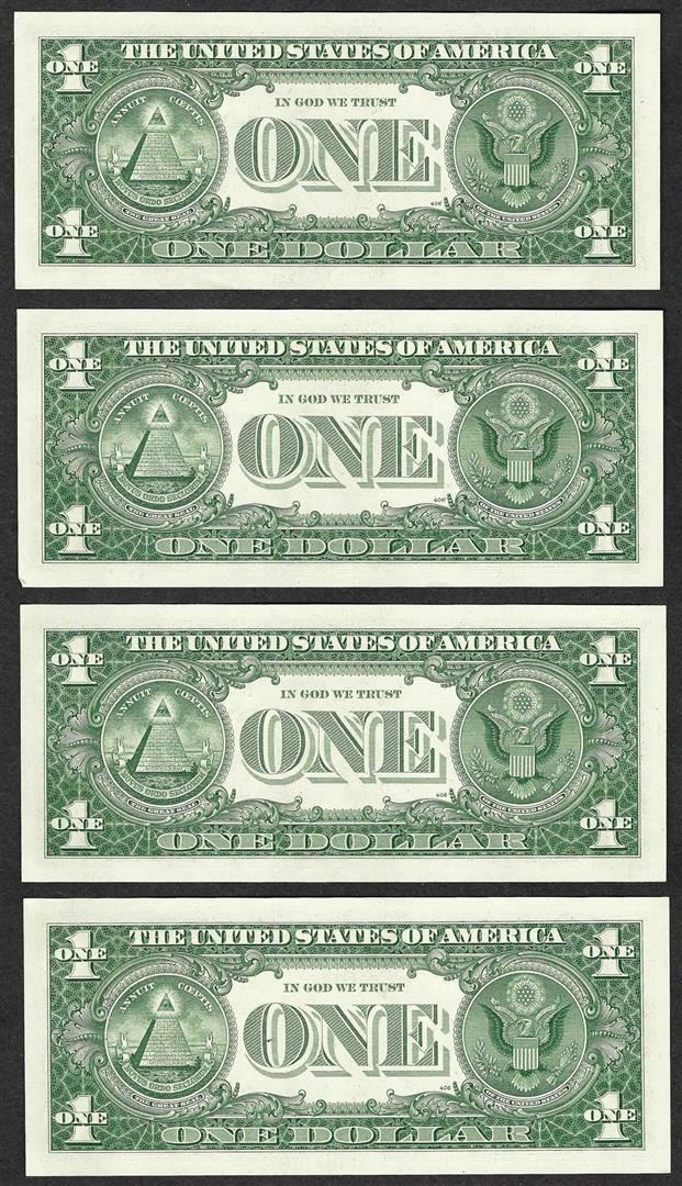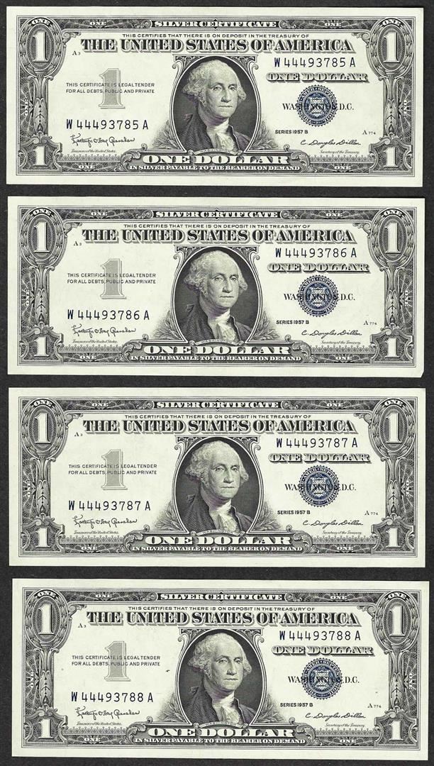 One Lot of (4) Consecutive 1957B $1 Silver Certificate Notes.
