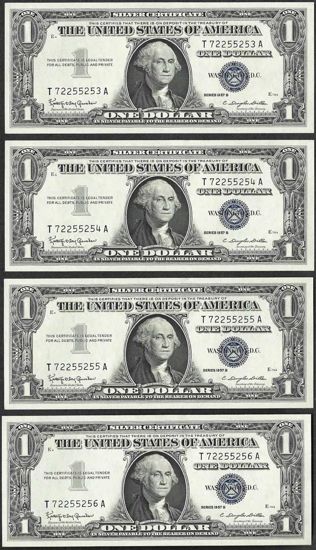 One Lot of (4) Consecutive 1957B $1 Silver Certificate Notes.