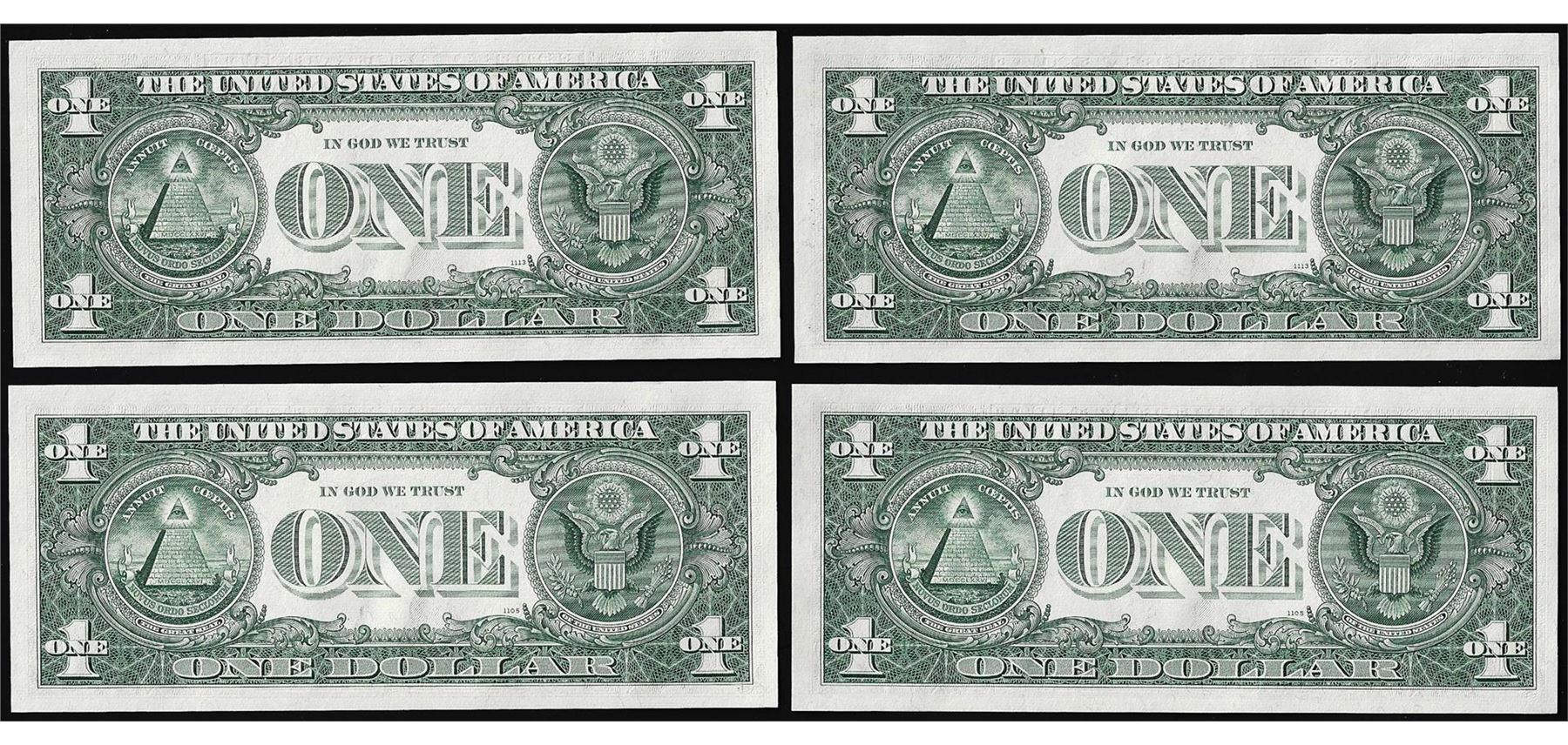 One Lot of (4) Consecutive 1963B $1 Federal Reserve Barr STAR Notes.