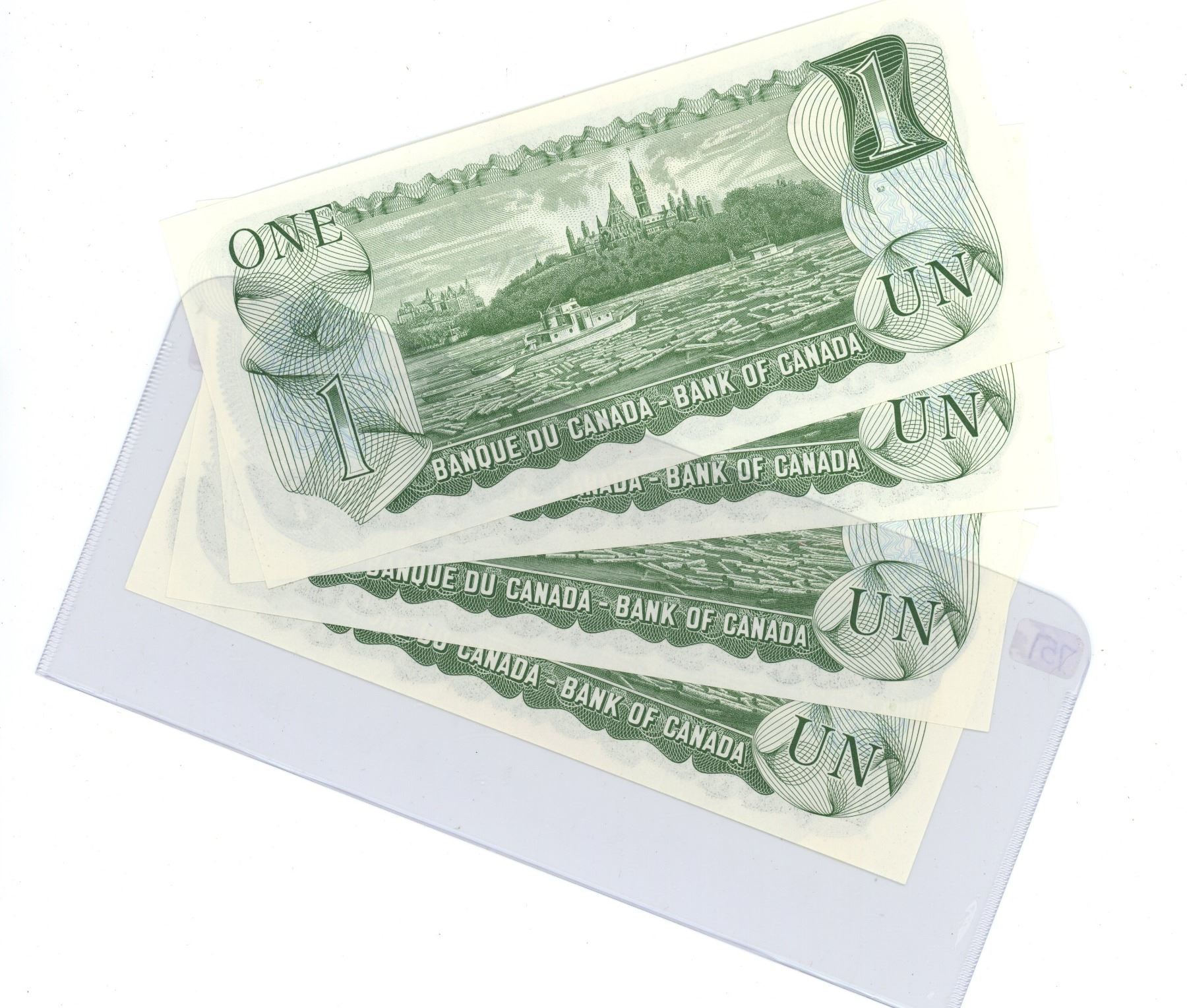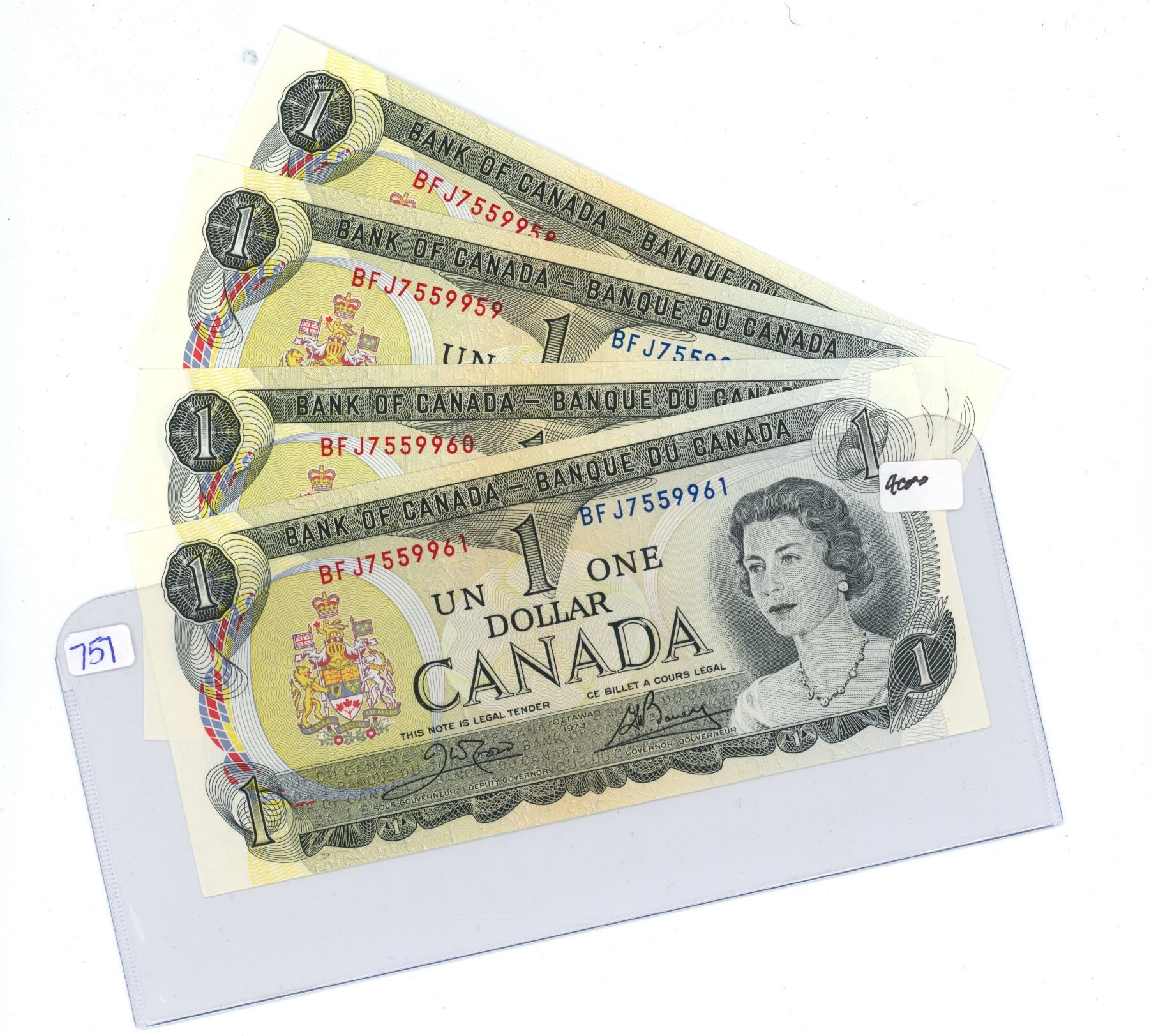 Lot of 4 Consecutive 1973 Canada $1, Crow/Bouey (#BFJ 7559958-961)