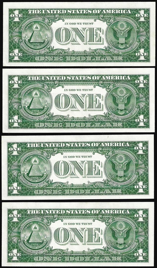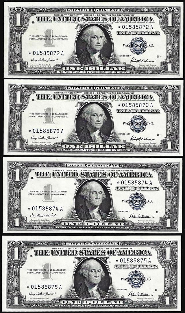 One Lot of (4) Consecutive Uncirculated 1957 $1 Silver Certificate Notes.