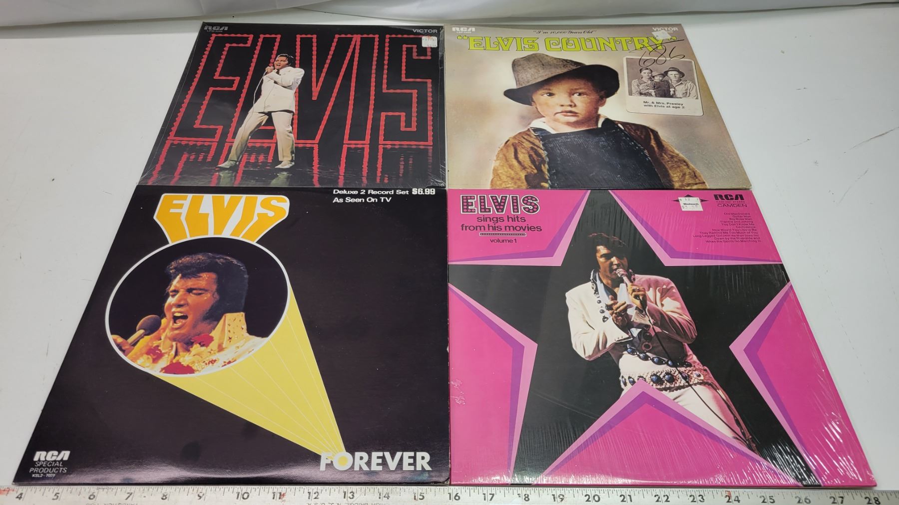 Lot of 4 Elvis Records; Elvis (sealed), Forever, Elvis Country, Elvis Single Hits