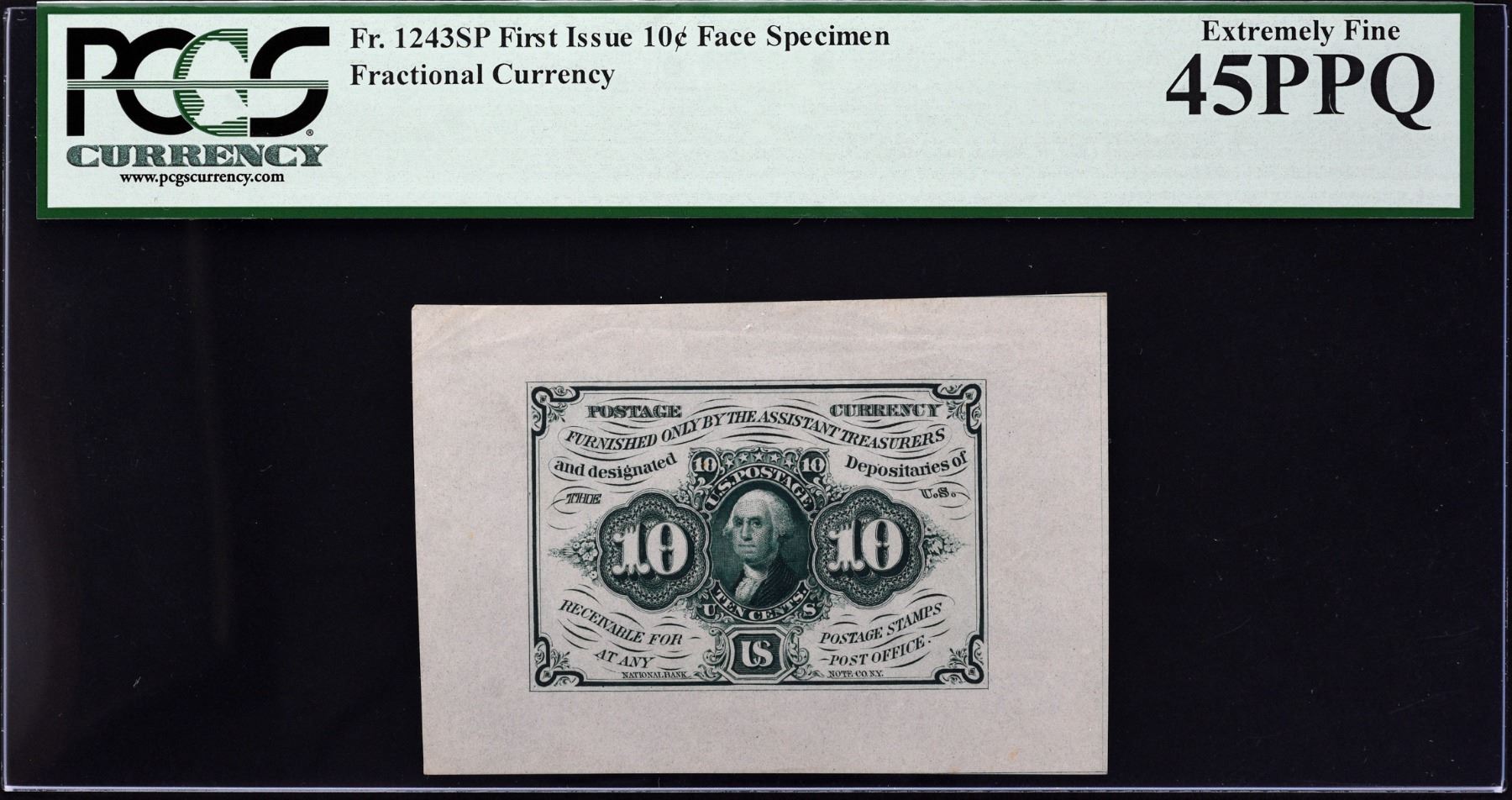 Includes the following; Fr. 1231sp face in Choice About New 58 with the comments "Minor Mounting Remnants on Back."; Fr. 1231sp back in Gem New 65 PPQ; Fr. 1243sp face in Extremely Fine 45 PPQ; Fr. 1243 back in About New 53.