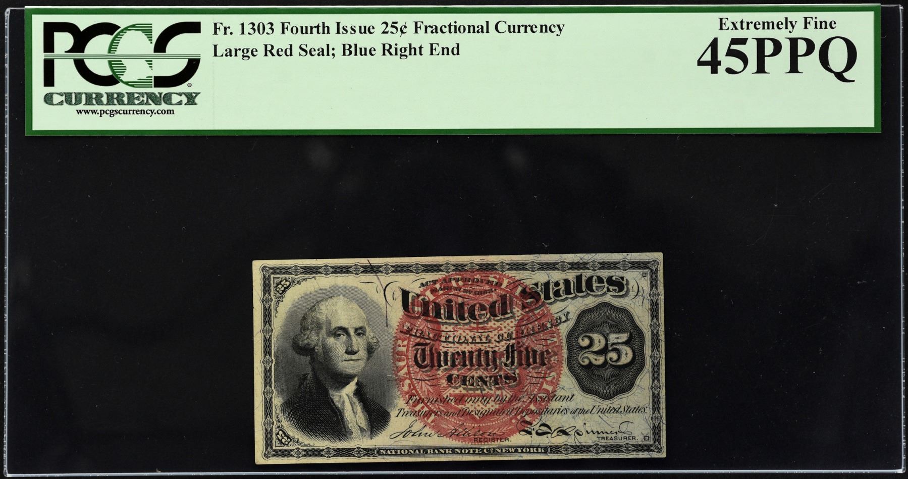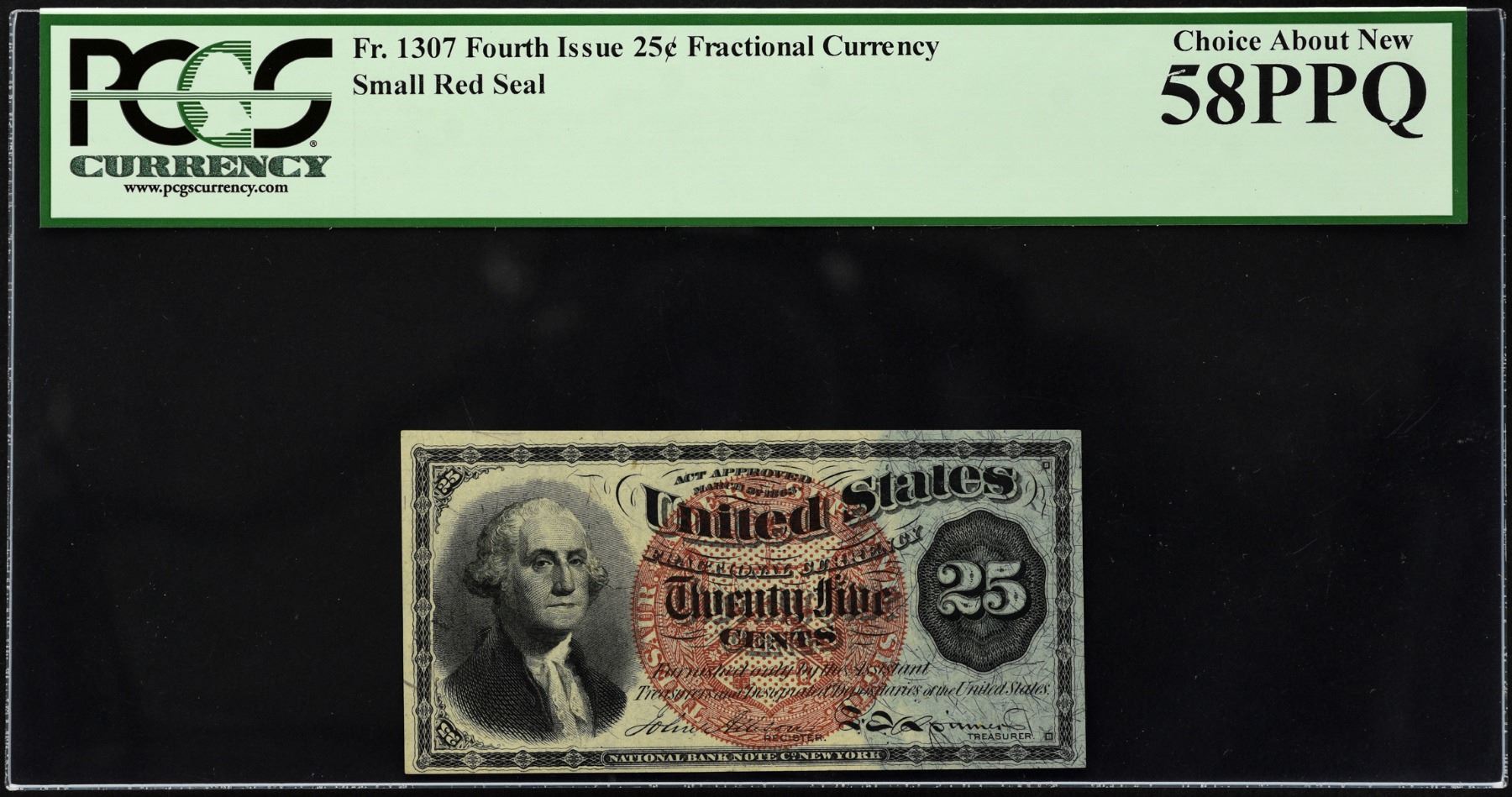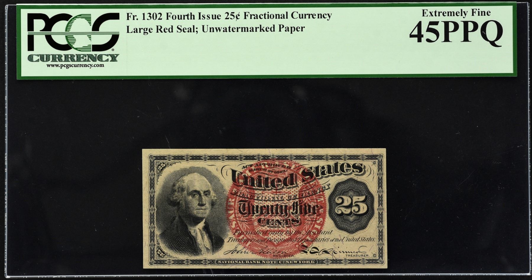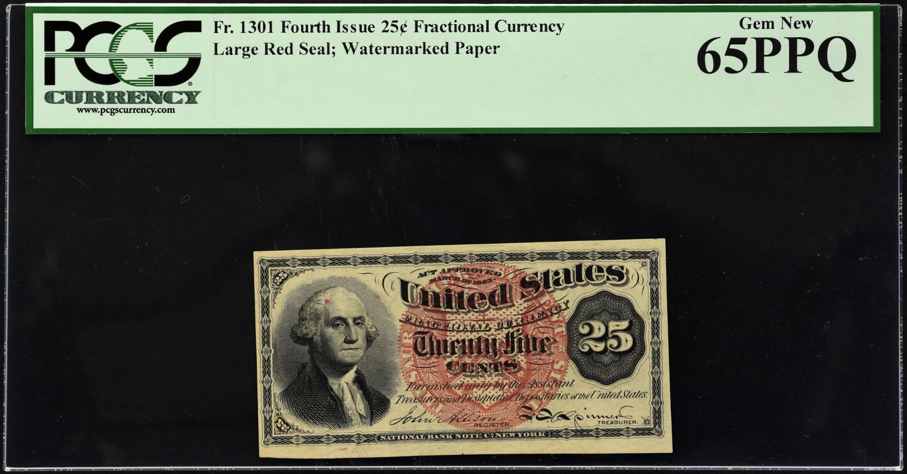 An impressive full set of these 25 Cent fourth issue notes with the following; Fr. 1301 in Gem New 65 PPQ; Fr. 1302 & 1303 in Extremely Fine 45 PPQ; Fr. 1307 in Choice About New 58 PPQ.