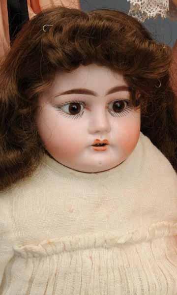 Description Ca. 1900. Bisque socket head incised "Armand Marseille 390", set eyes, open mouth, replaced wig, jointed composition body (replaced hands), dressed. Bisque shoulder head incised LW & Co., for Louis Wolf. Set glass eyes, replaced wig, kid body with new bisque hands, new clothes. Bisque socket head incised P. Sch 1899 for Paul Schmidt, new cloth body, composition hands, dressed. Bisque shoulder head incised Horseshoe and 1900, stationary eyes, replaced wit, kid body with bisque hands, vintage dress, corset, undies, shoes and socks. Condition (Good). Size Largest: 21" T.