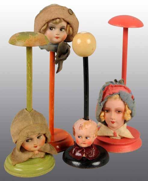 Description Germany, Ca. 1920. Papier-maché faces, painted features (some soil). Condition (Very Good). Size Largest: 11" T.
