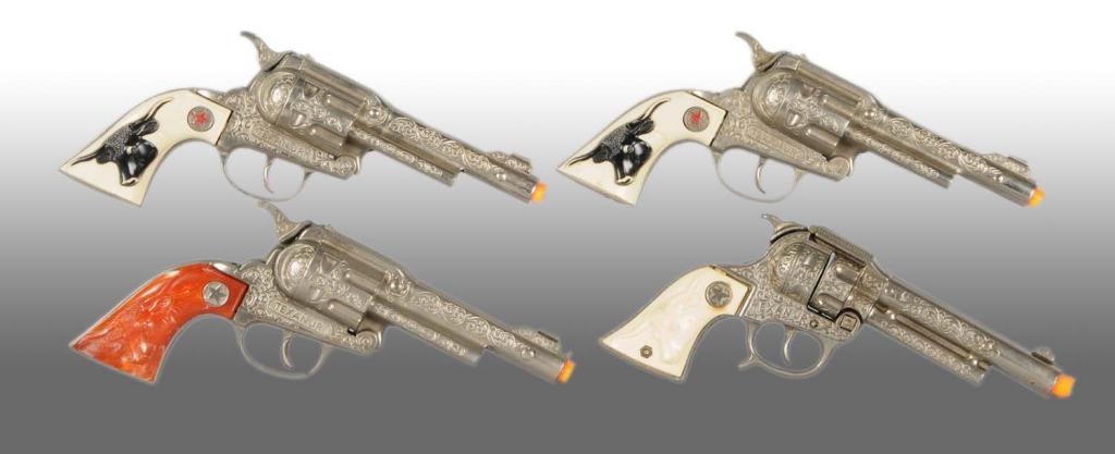 All are working. Two of the pistols have some cap oxidation on barrels. Cap Gun Condition (Very Good). Size Largest: 9 - 1/2" L.