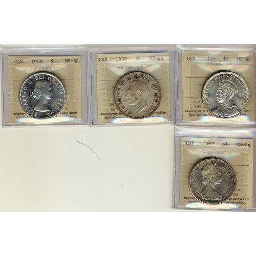 Lot of 4 ICCS graded MS-64 $1; 1935, 1939, 1958, 1967