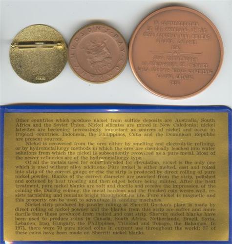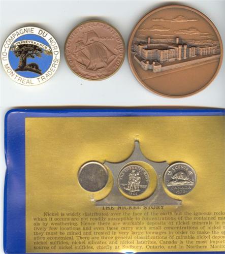 Compagnie Du Nord - Du Montreal Traders, brooch enameled like mint. Copper Hudson Bay 1970 medal in mint, Sherritt Mint history of Nickel set. 1986 Reopening of the Royal Canadian Mint.