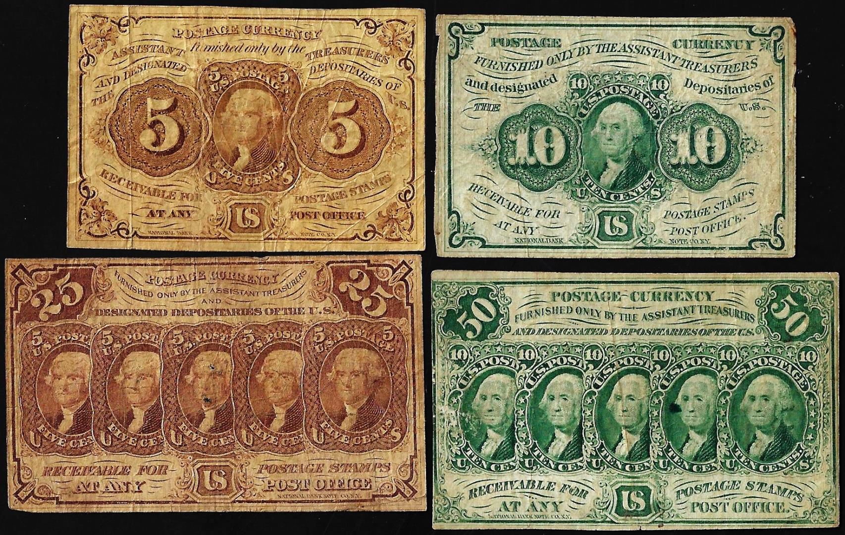 Lot of (4) July 17, 1862 First Issue Fractional Currency Notes