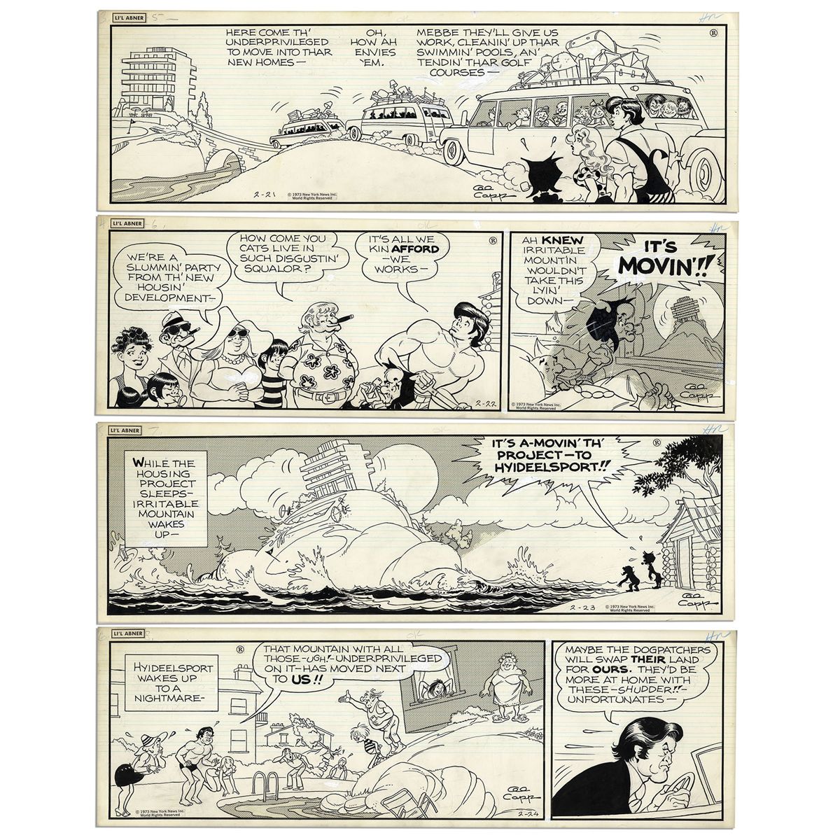Lot of 4 ''Li'l Abner'' 1973 Comic Strips -- Hand-Drawn & Signed by Al Capp, Who Adds Pencil Sketches to 3 -- With Abner, Daisy Mae & Mammy -- 19.75'' x 6.25'' -- Toning & White Out, Near Fine