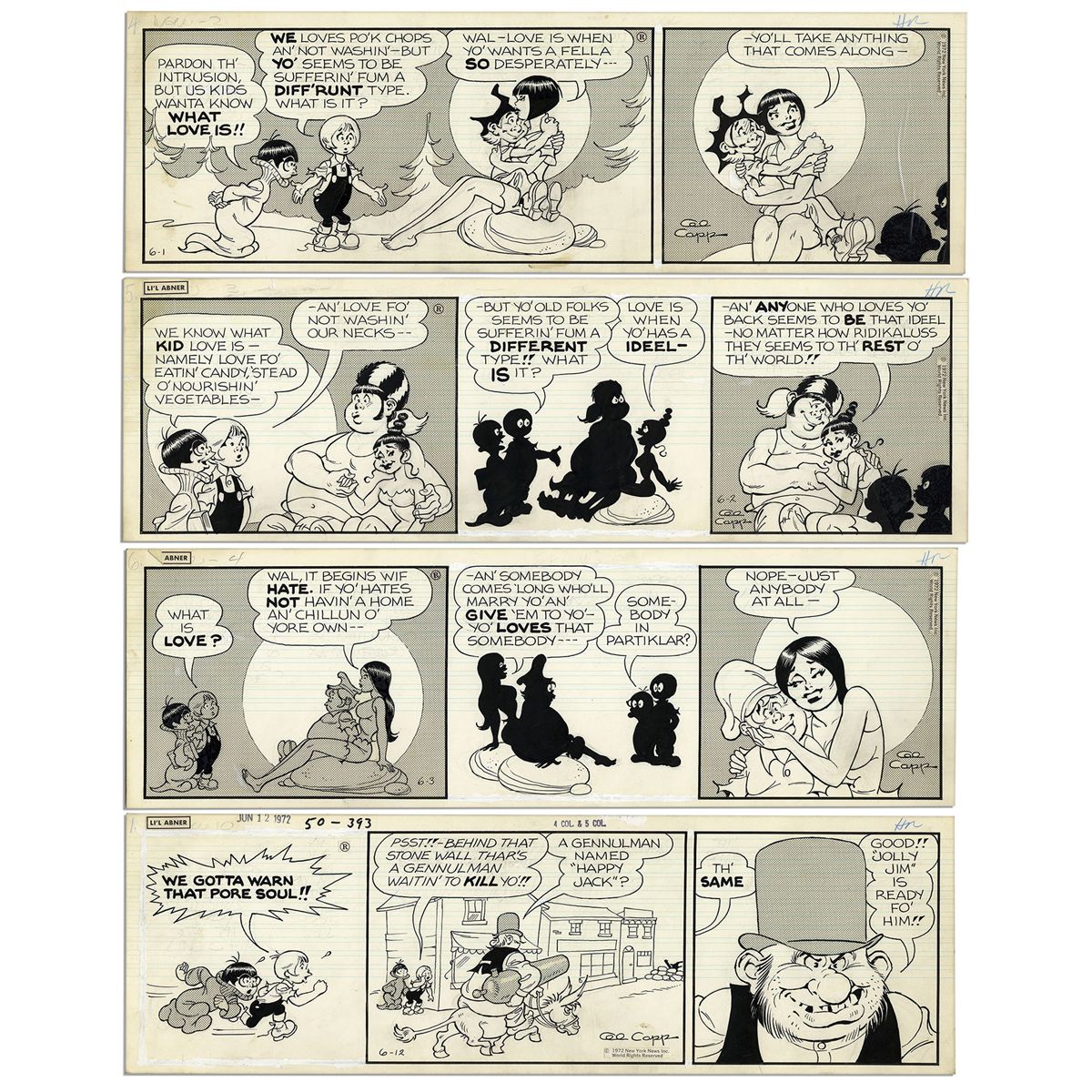 Lot of 4 ''Li'l Abner'' Comic Strips From 1972 -- Hand-Drawn & Signed by Al Capp -- 19.75'' x 6.25''