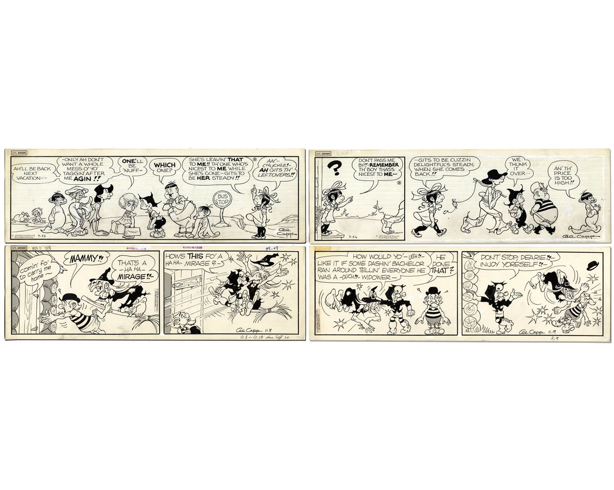 Lot of 4 ''Li'l Abner'' Comic Strips From The 1970's -- Hand-Drawn & Signed by Al Capp & Featuring The Yokum Family -- 19.5'' x 6.25'' -- Toning & White Out, Near Fine