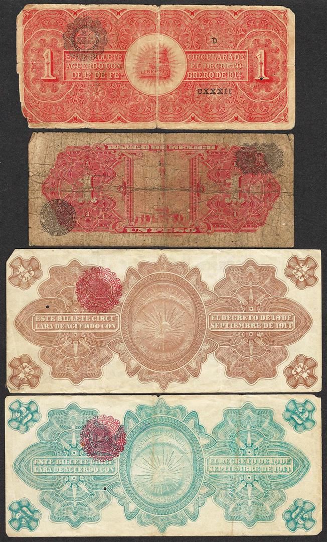 One Lot of (4) Misc. Mexico Peso Currency Notes.