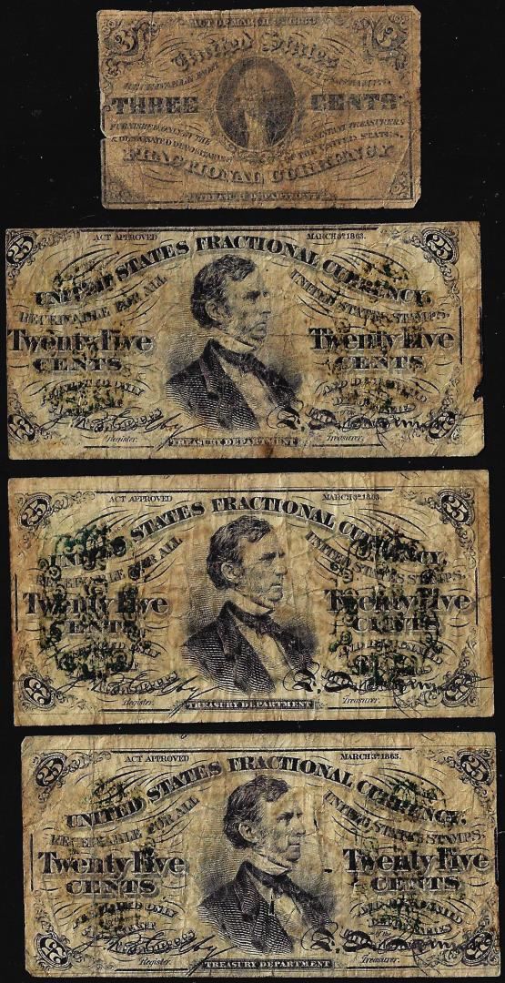 One Lot of (4) Miscellaneous Third Issue Fractional Currency Notes.