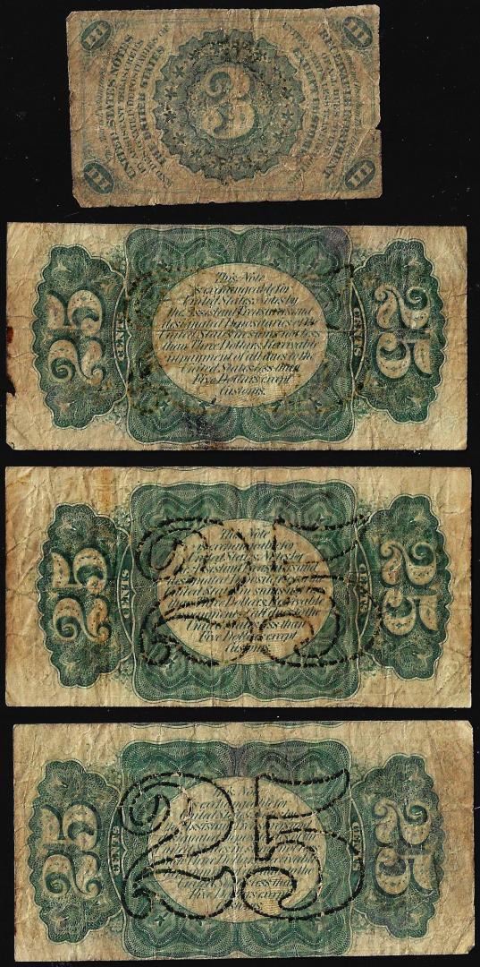 One Lot of (4) Miscellaneous Third Issue Fractional Currency Notes.