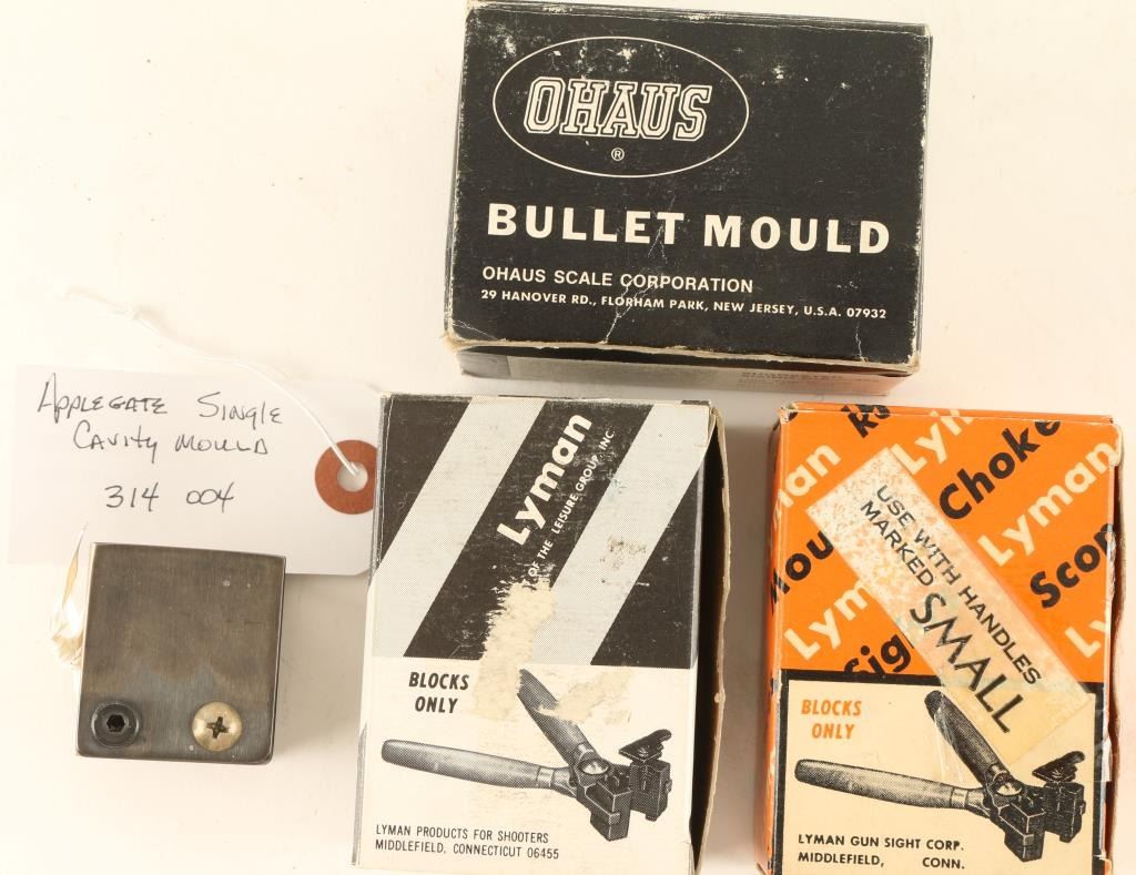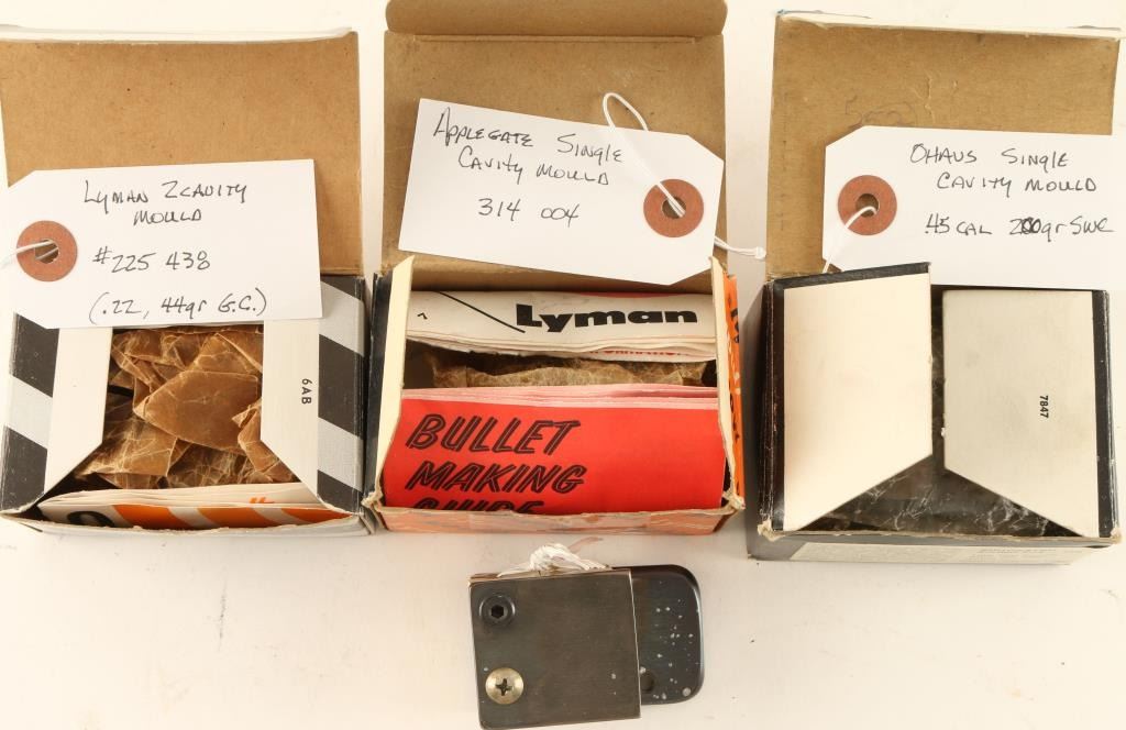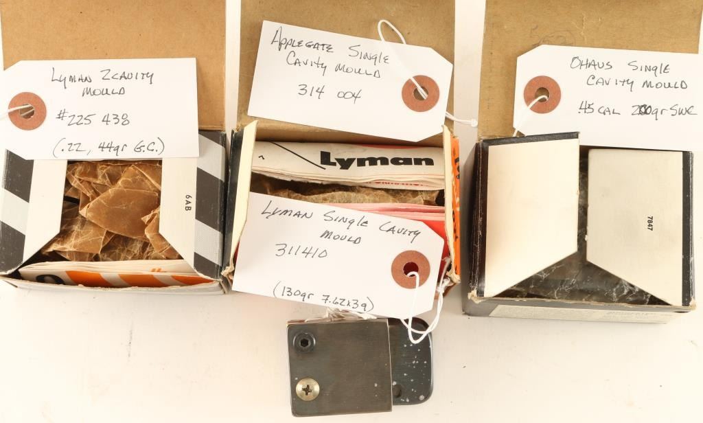 Including an Applegate single mould for a .314, a Ohaus .45 cal, a Lyman two cavity .22/44 GR GC and a Lyman mould for a 7.62X39 130GR