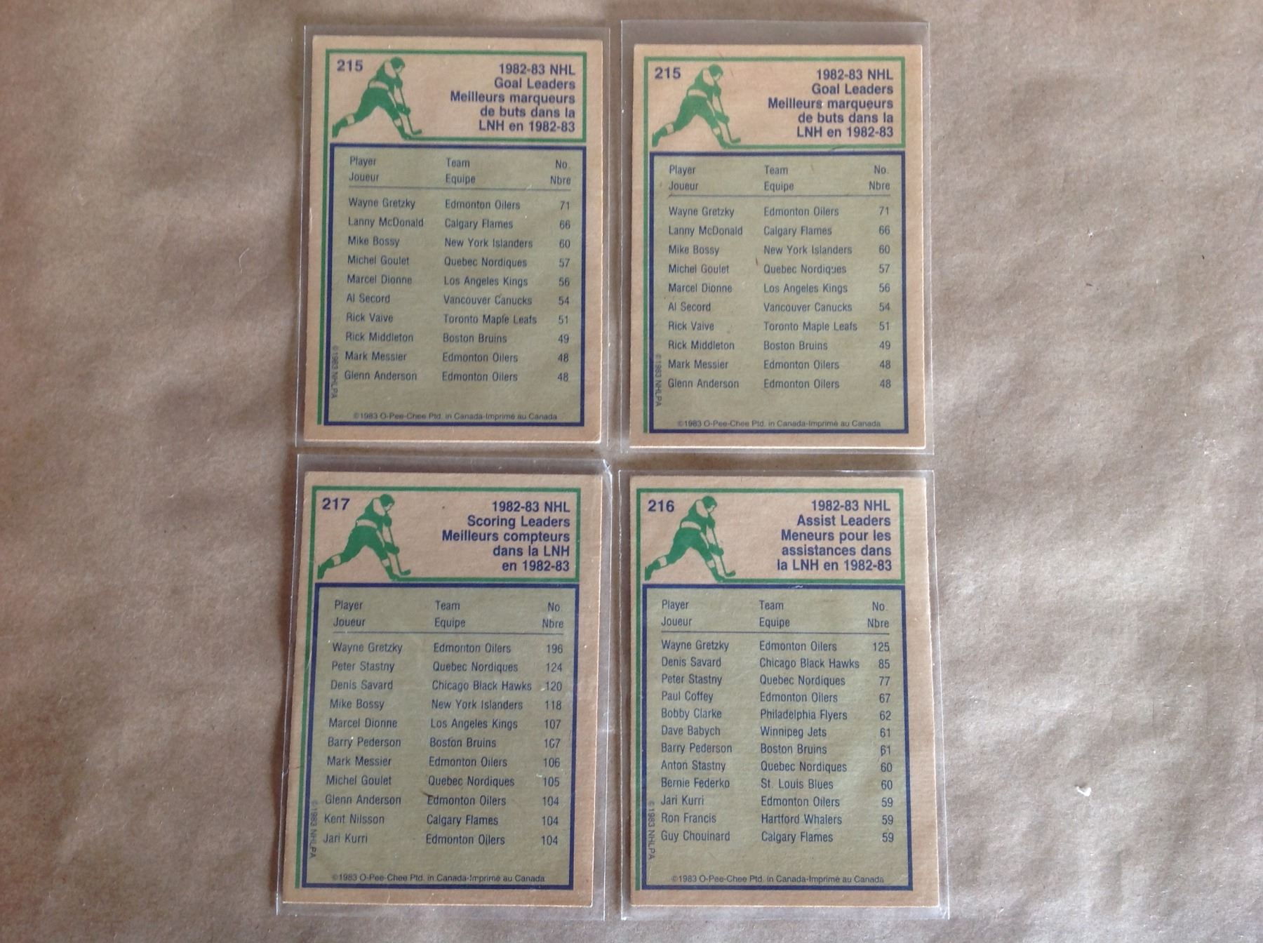1982/83 Edmonton Oilers Goal & Assist Leader Hockey Cards * Wayne Gretzky # 215 - # 216 - # 217