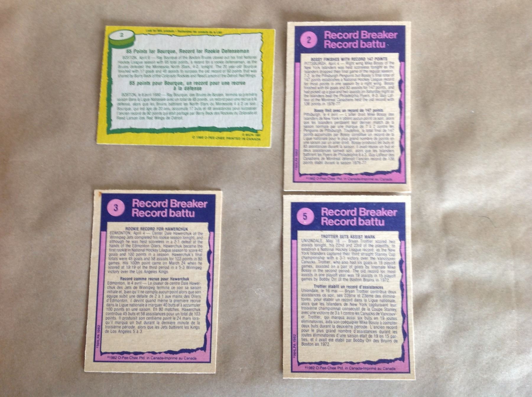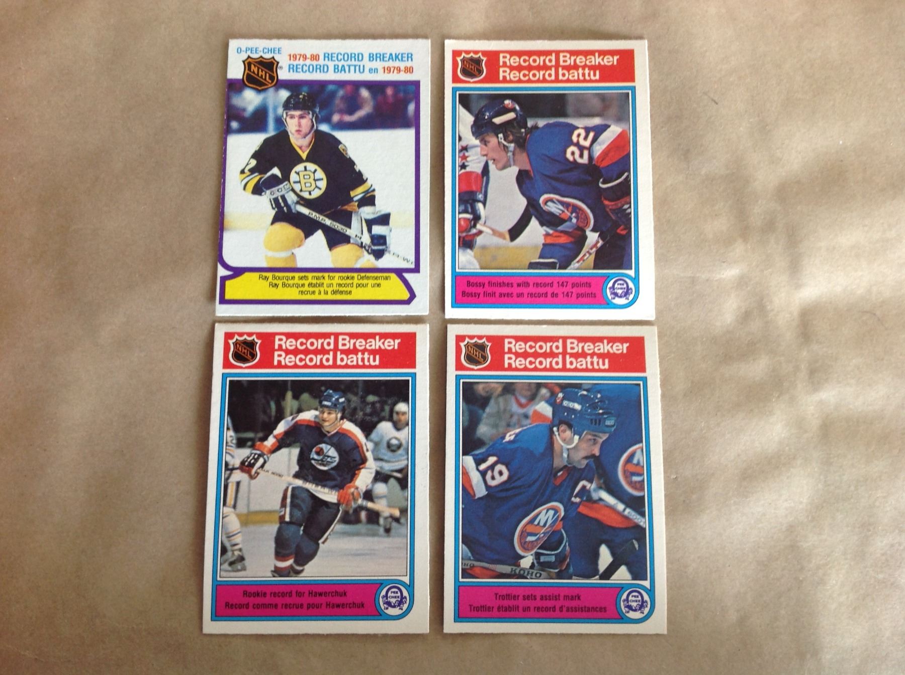 1970's , 80's - Hockey Cards - 1979 # 2 * Ray Bourque - 1982 #2 * Mike Bossy - # 3 Rookie Dale Hawerchuk - # 5 * Bryon Trottier