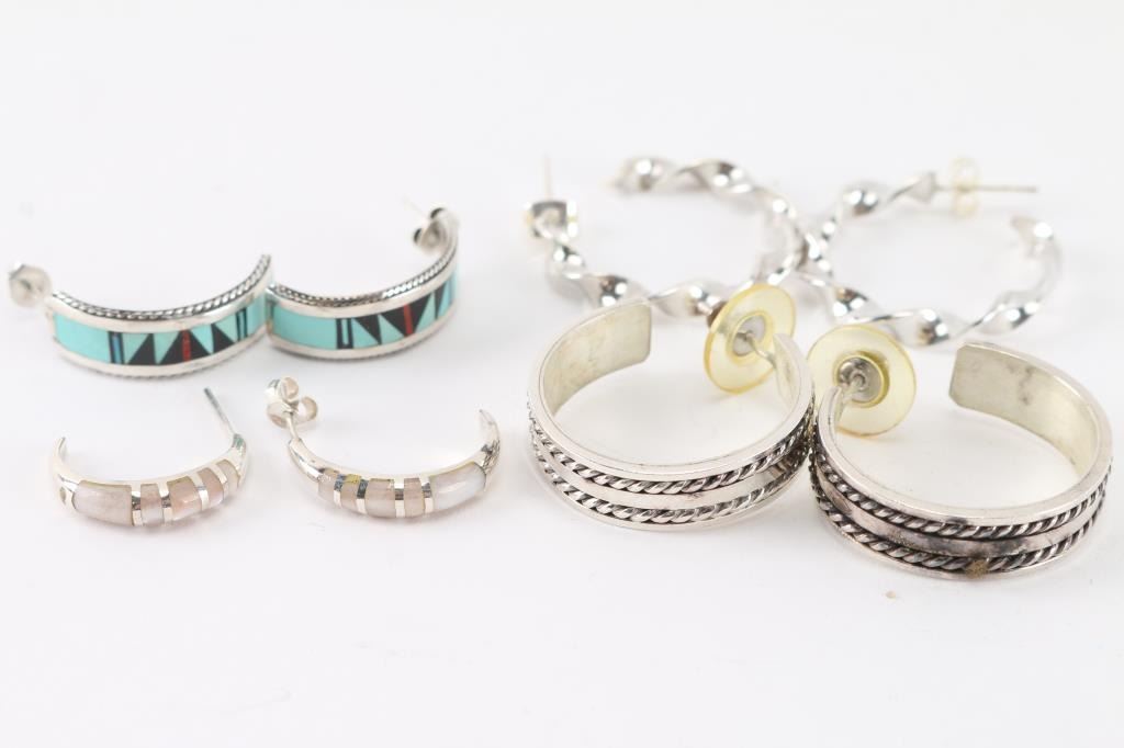 (1) Half moon shaped earrings, sterling silver inlaid with mother of pearl. Maker marked MC.