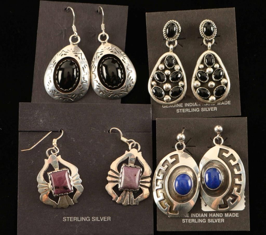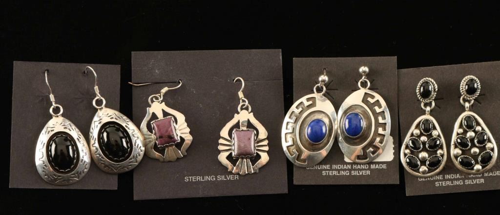(2) Pairs Onyx And Sterling Dangle Earrings, (1) Lapis And Silver And (1) Pair Of Sugilite And Sterling Dangles.