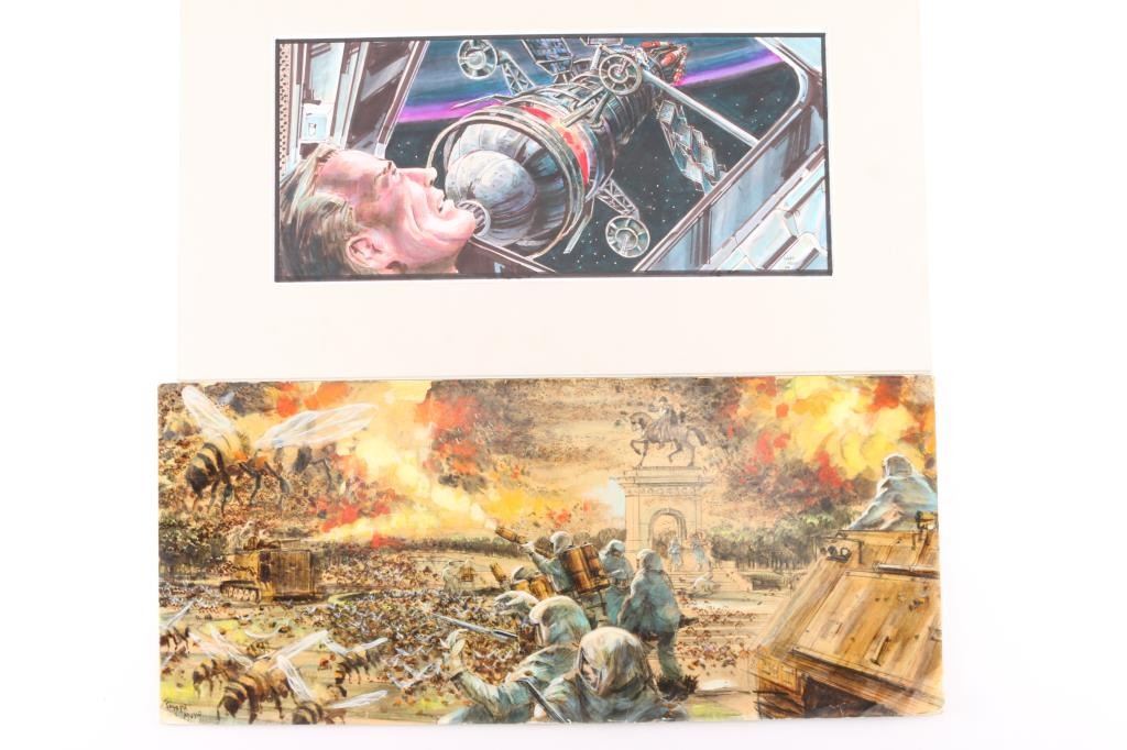 (1)Original gouache on paper depicting scene from the movie "The Swarm", minor condition issues due to age, 22 1/2"x9 1/2".