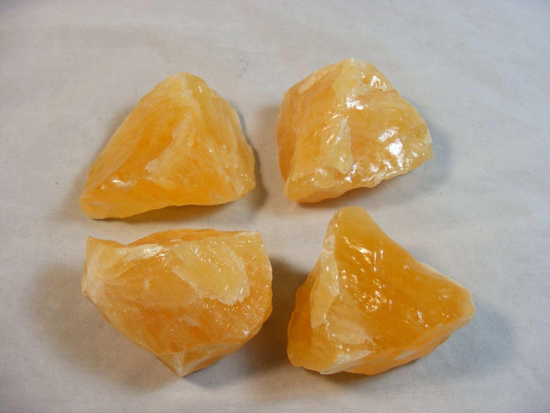 Lot of 4 pieces of rough orange calcite from Mexico.