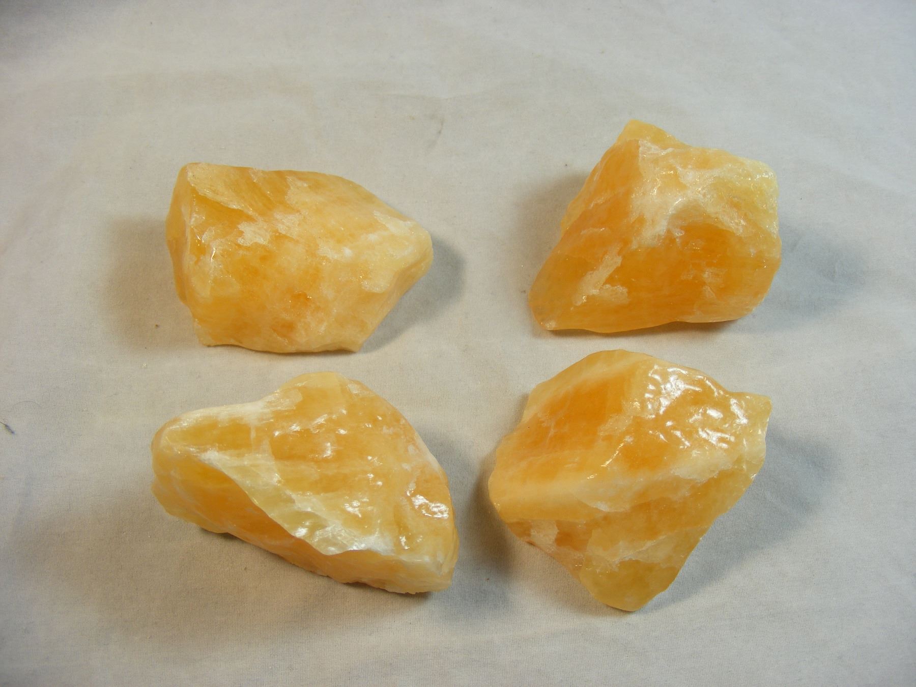 Lot of 4 pieces of rough orange calcite from Mexico.