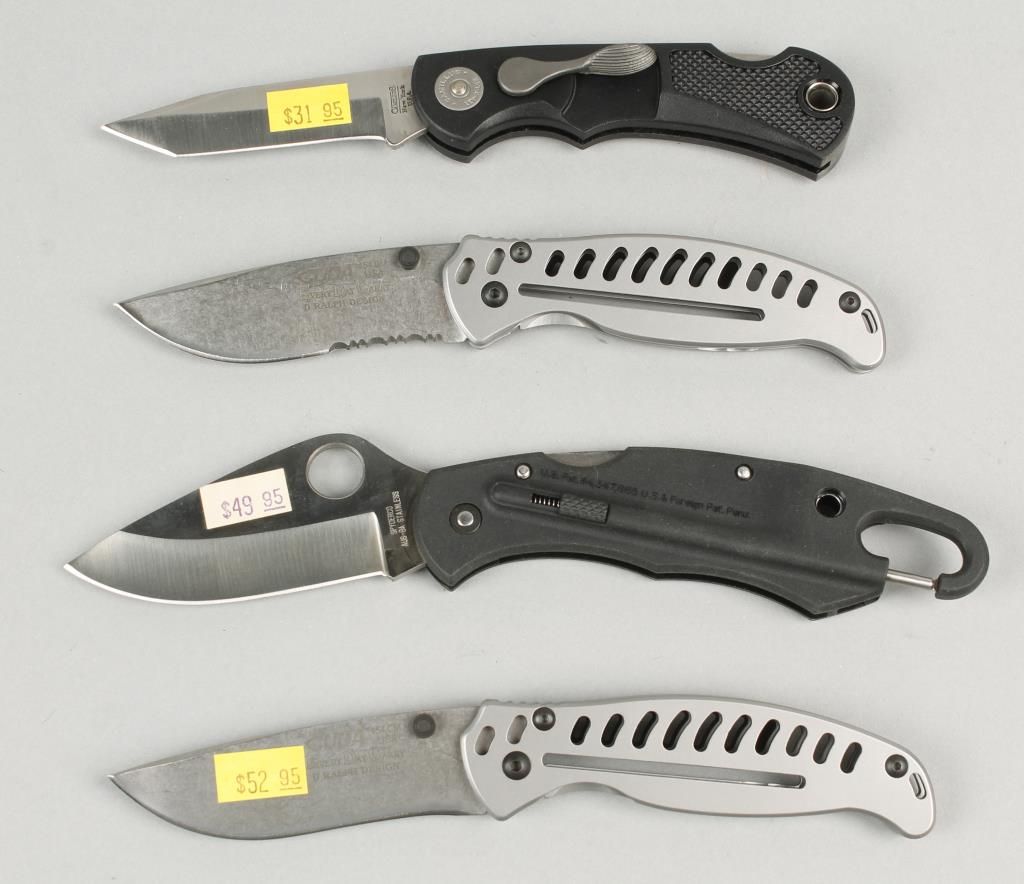 Including: Spyderco Zytel C30PBK, remote release; Camillus 5850, made in USA; Cuda CU2211, made in USA; and Cuda CU2201, made in USA.
