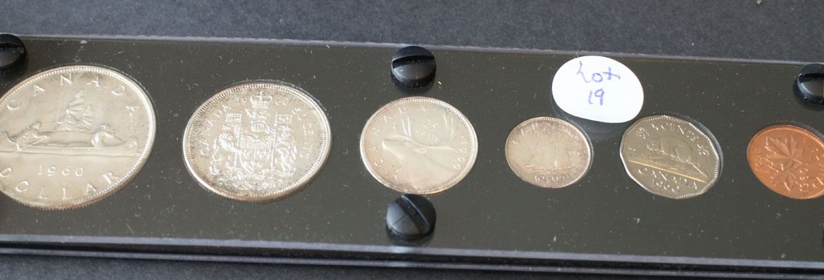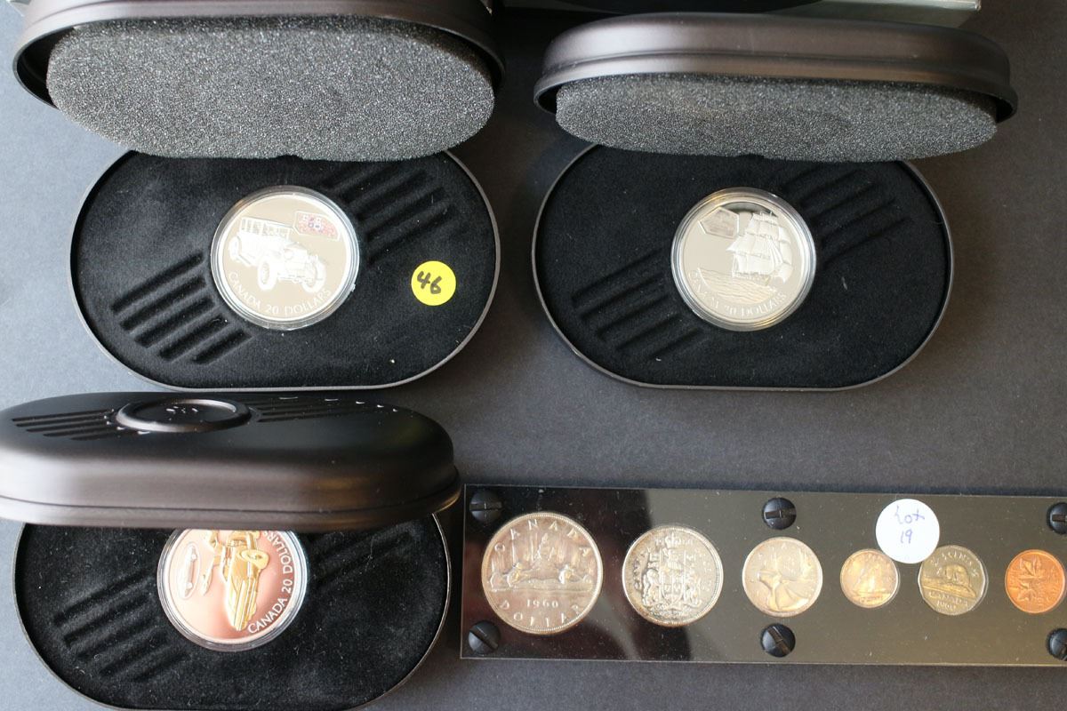 Lot of 4: Canada 1960 6-coin encased set (4 of 6 are Silver), 2003 RCM Silver w/ Gold Plating Twenty Dollar Proof Coin "Bricklin SV-1", 2002 RCM Silver Twenty Dollar Proof Coin "Gray-Dort", 2001 RCM Silver Twenty Dollar Proof Coin "Marco Polo"