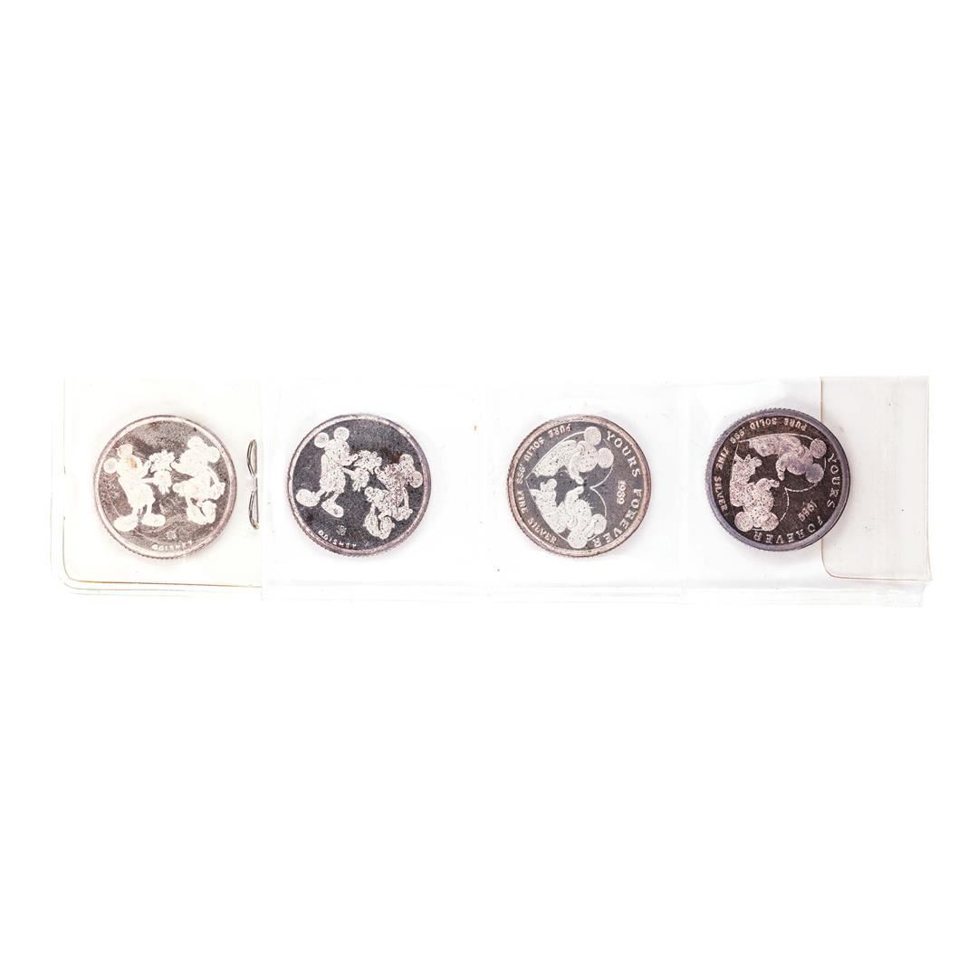 Lot of (4) Rarities Mint Assorted Disney 1/8 oz .999 Fine Silver Rounds