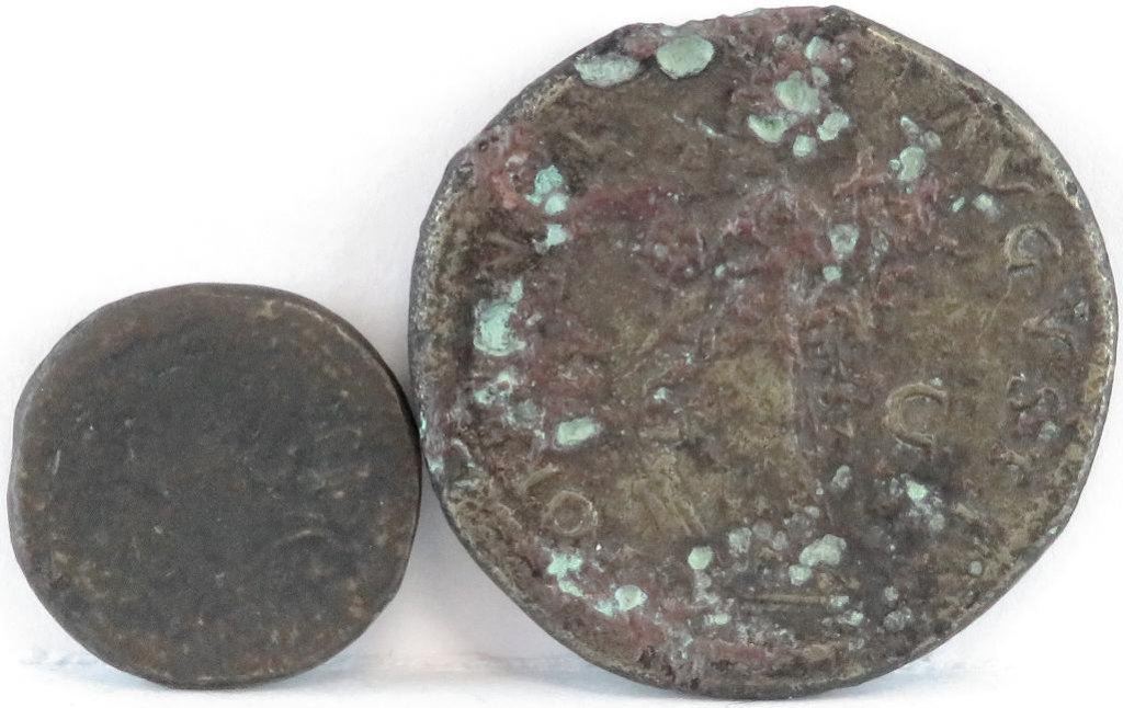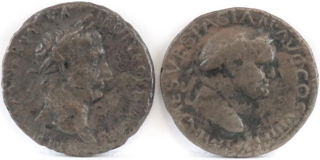 Lot of (4) Roman Empire Coins includes 100 B.C. ob. head right - rev. chariot, 81-96 Domitian, 96-98 Nerva  69-79 Vespasian.